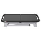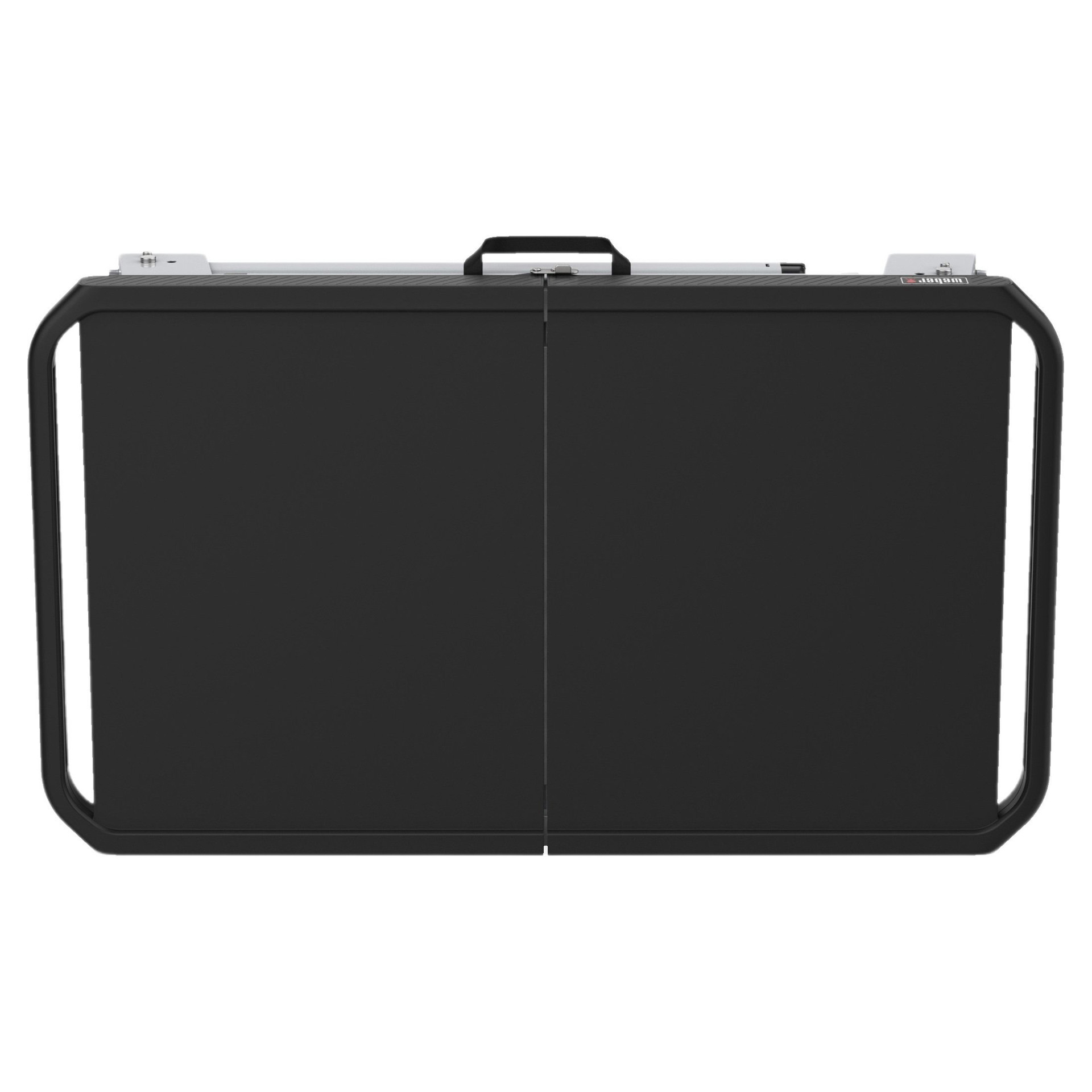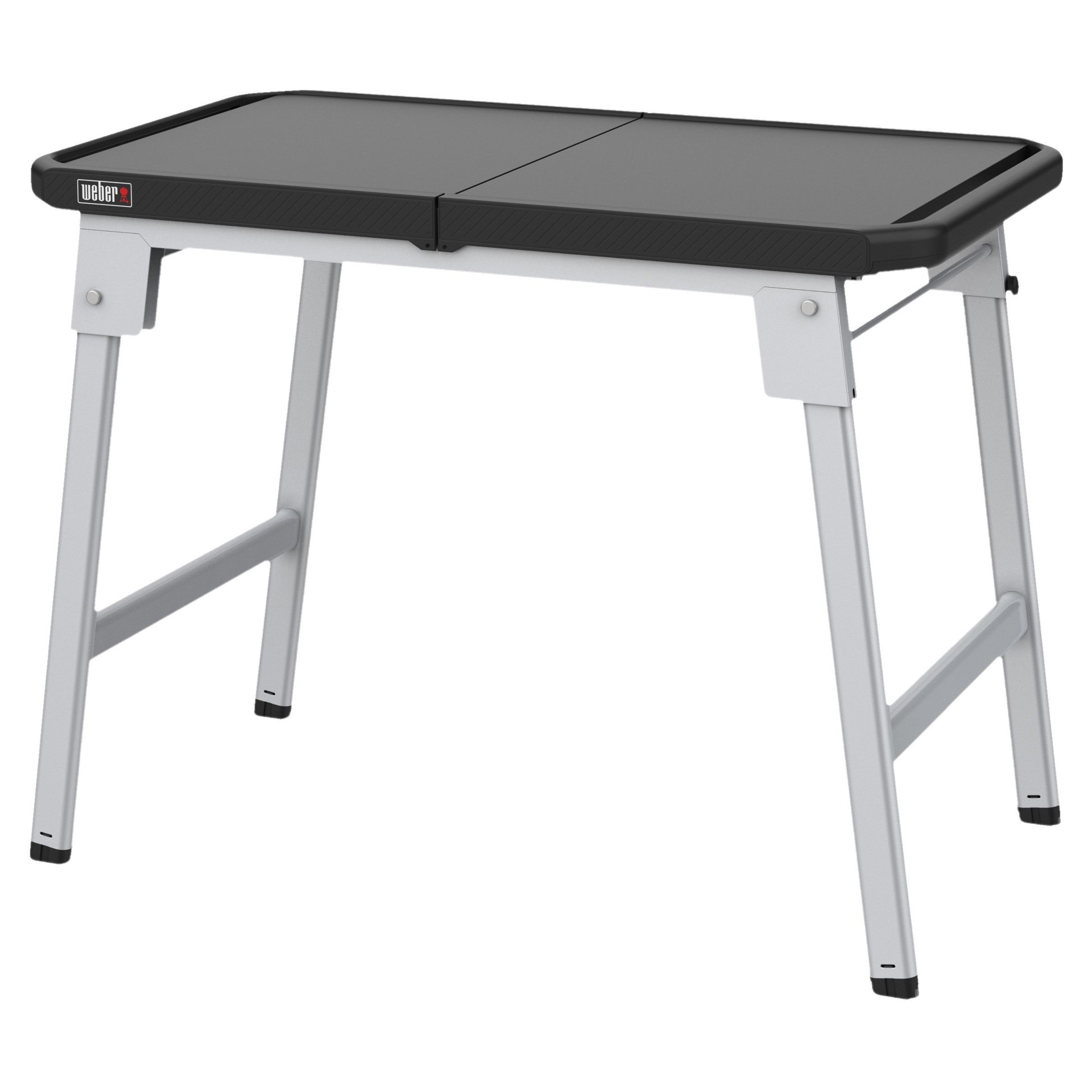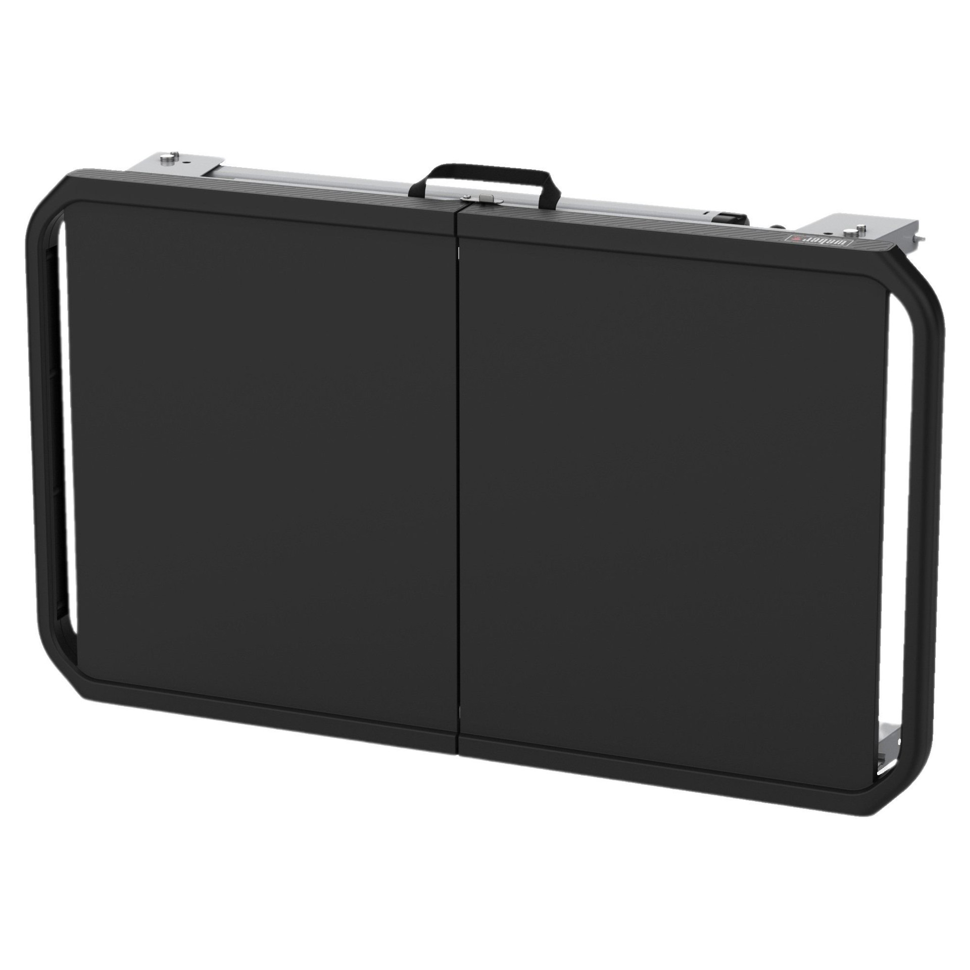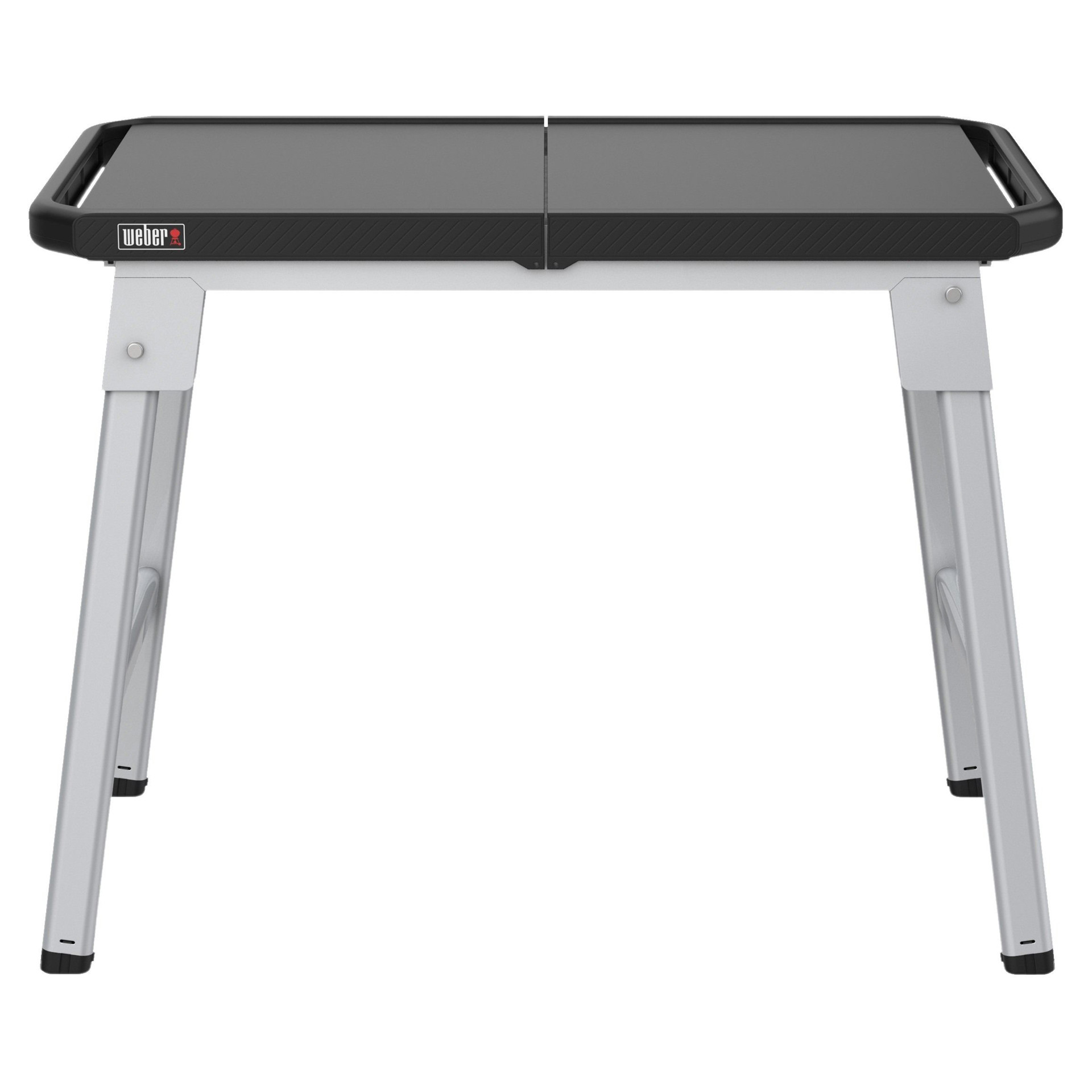 Le support extensible se range facilement dans le coffre d'une voiture et se déploie tout aussi facilement une fois arrivé à destination. Son design innovant comprend des pieds réglables pour une stabilité optimale de la plaque de cuisson sur différentes surfaces. Ses deux tablettes latérales se replient l'une sur l'autre lorsque la plaque de cuisson est retirée, formant ainsi une table de service.