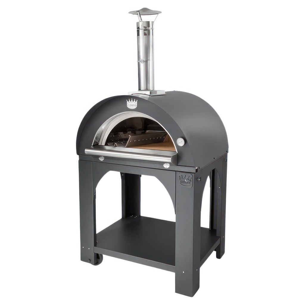 La zone de cuisson est composée de briques réfractaires qui retiennent la chaleur du feu pour donner une base de pizza parfaitement croustillante. Le four a un thermomètre, un système de registre sur la cheminée pour le contrôle de la température, une porte en acier inoxydable et un système Air Plus unique, qui permet à un flux d'air uniforme de s'écouler dans le feu. Le four est isolé avec 8 cm de laine de roche + 2,5 cm de fibre céramique + 3 cm de plus de laine de roche tapisse le toit du four à pizza. Cela signifie que la cuisson lente est réalisable facilement dans le Clementi.