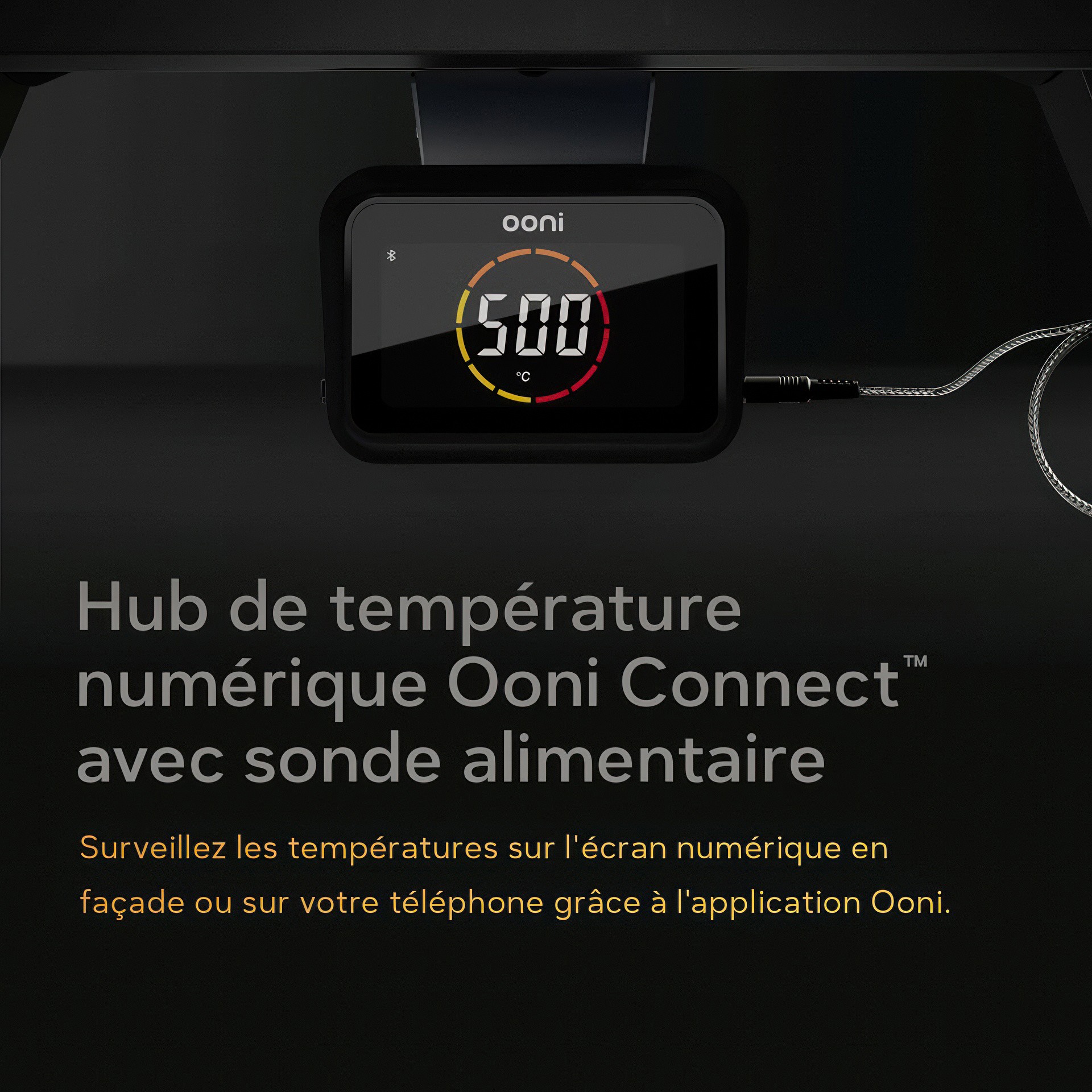 • Hub de température numérique pour vérifier les températures internes du four, en façade ou envoyées directement sur votre téléphone via Bluetooth.