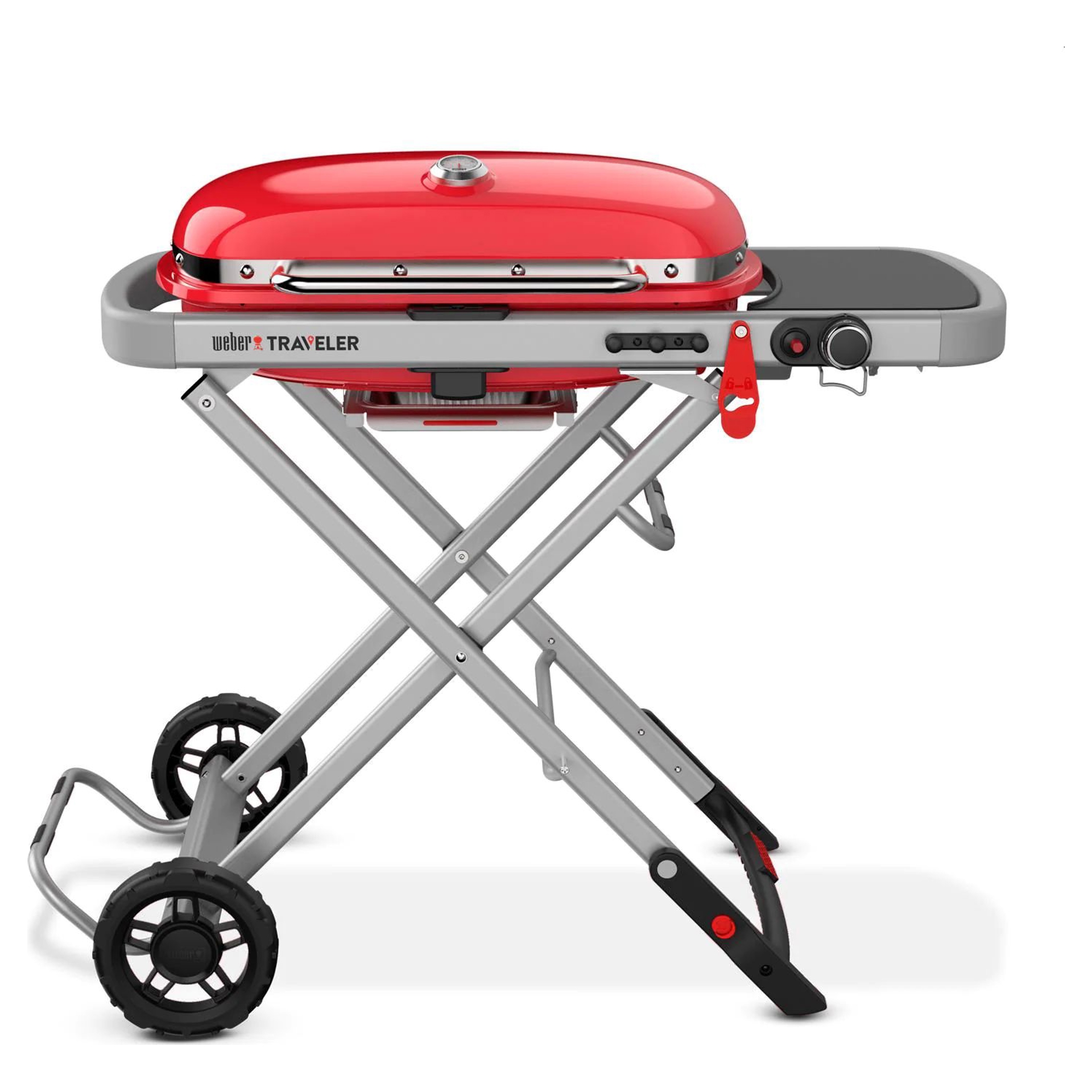 Le barbecue à gaz portable Weber Traveler offre 320 pouces carrés d'espace de cuisson pour créer les aliments grillés que vous aimez n'importe quand, n'importe où.