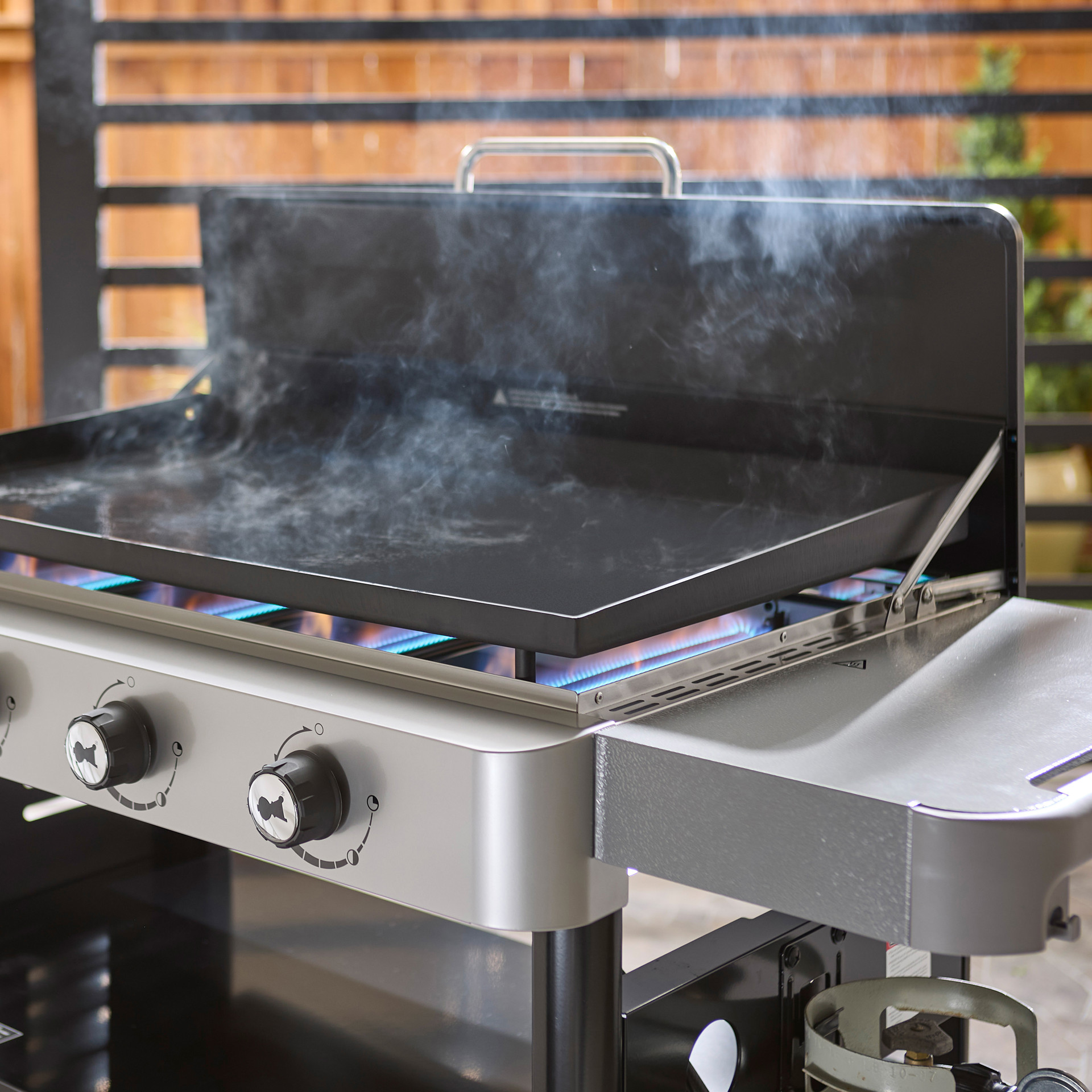 • Chauffe à plus de 500 °F pour saisir des steaks à feu vif et croustiller le bord des hamburgers écrasés et du bacon.