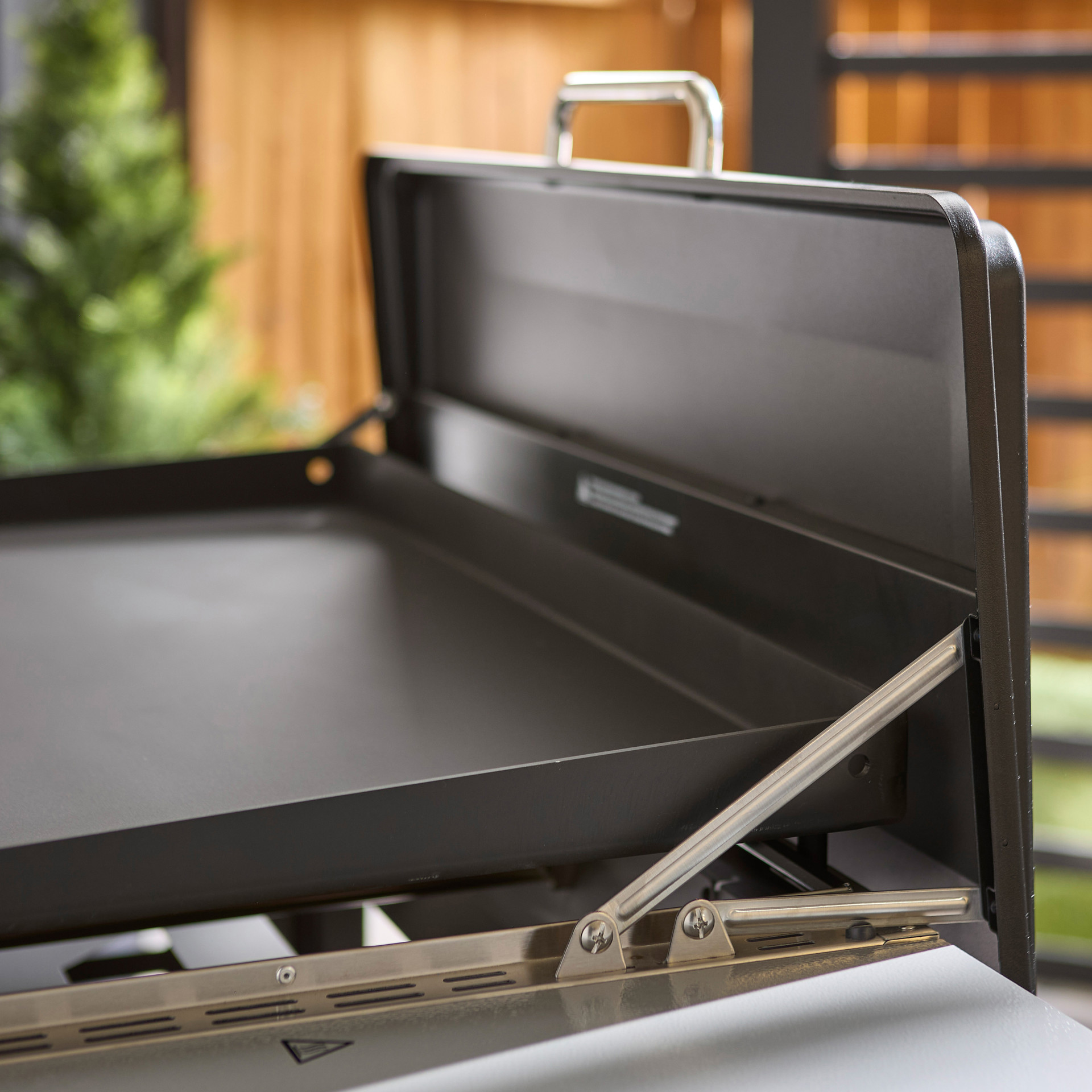 • Le couvercle rigide à charnières se soulève facilement lorsque vous êtes prêt à cuisiner et protège la plaque de cuisson des éléments lorsqu’il est fermé.