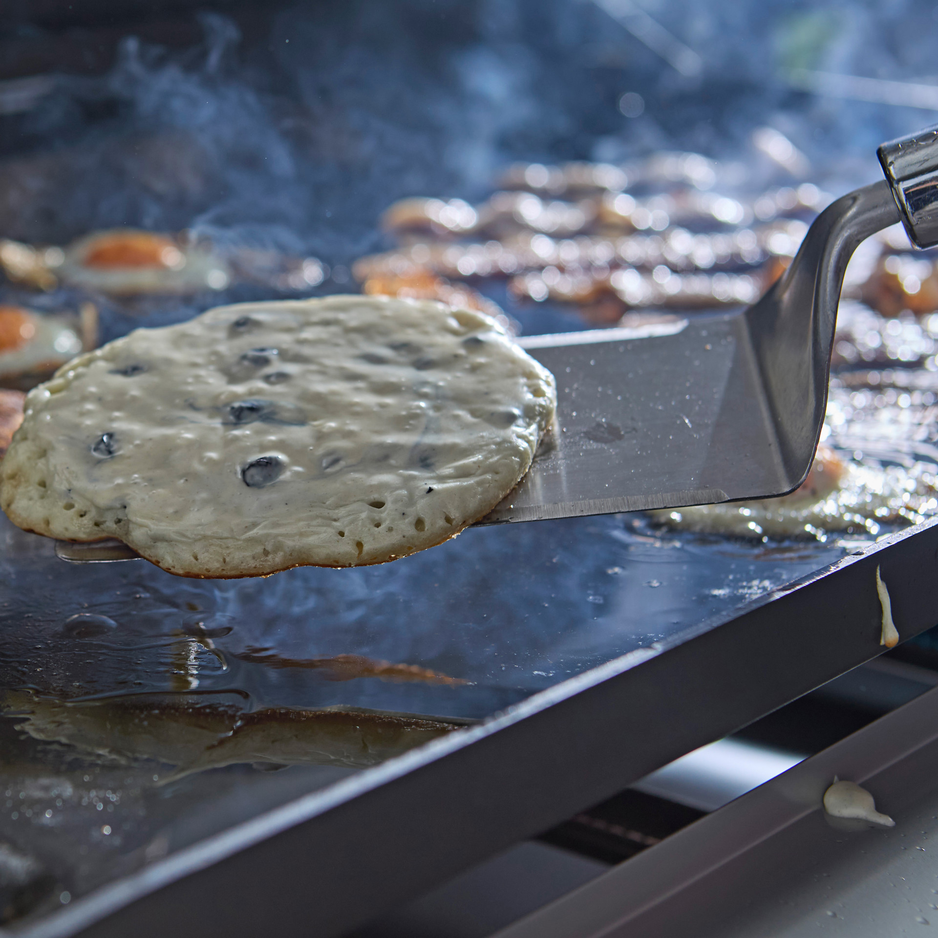 Cette plancha chauffe rapidement à plus de 500 °F et assure une chaleur uniforme sur toute la plaque de cuisson. Quatre brûleurs de réglage de précision permettent de créer plusieurs zones de chaleur, ce qui vous permet de cuire des crêpes parfaites à feu doux et du bacon croustillant à feu vif sur la même plaque de cuisson.