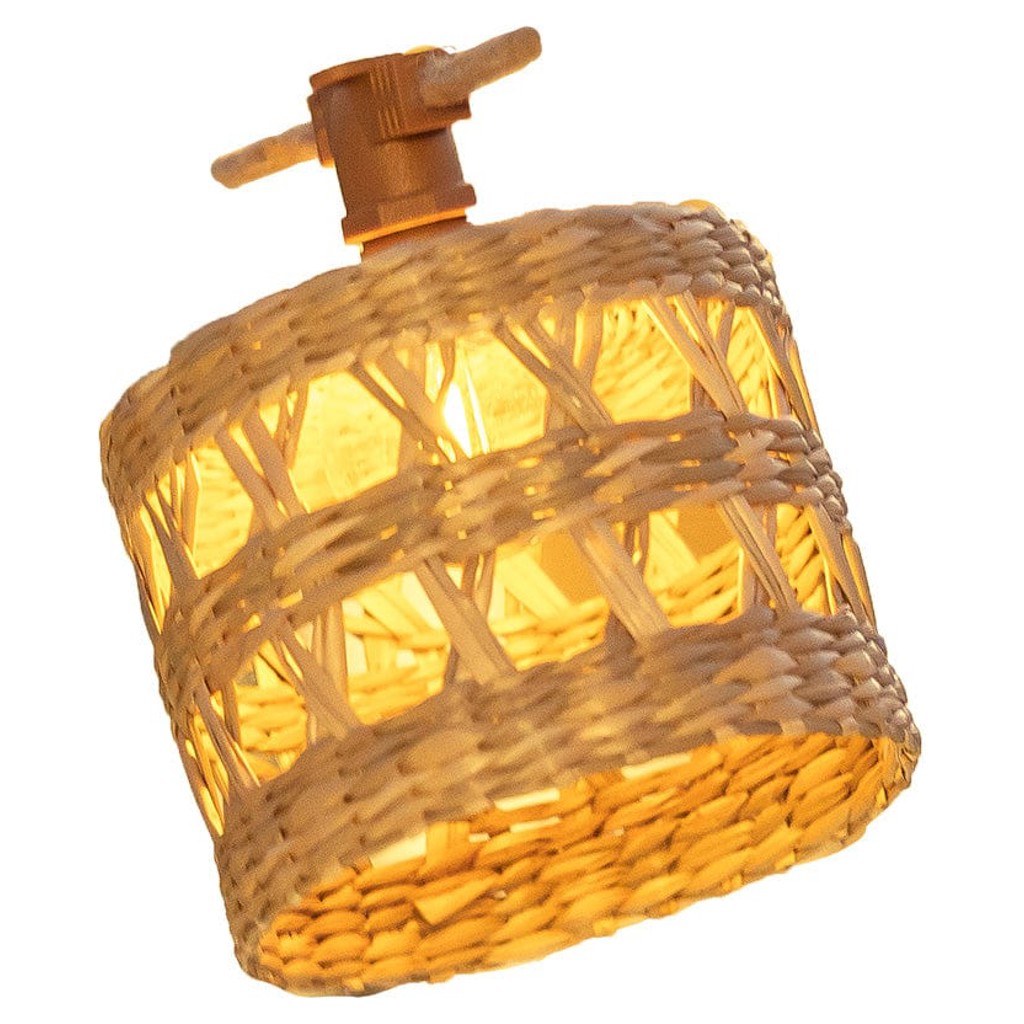 L'abat-jour est fabriqué à la main à partir de fibres naturelles, ce qui ajoute à son attrait authentique.