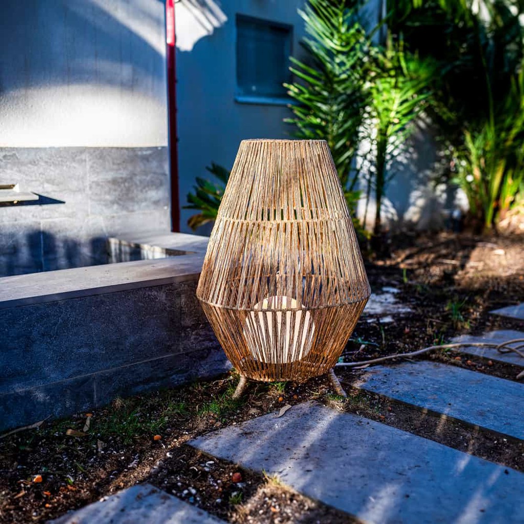 Illuminez votre maison ou votre jardin avec Sisine 70 : une lampe décorative exquise fabriquée à la main avec des fibres naturelles.