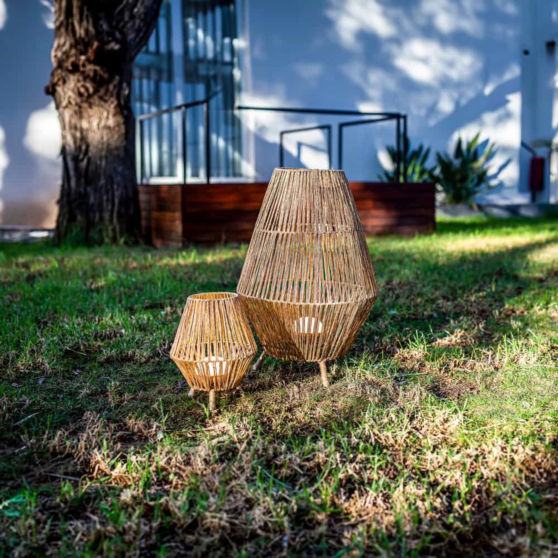 Illuminez votre maison ou votre jardin avec Sisine 70 : une lampe décorative exquise fabriquée à la main avec des fibres naturelles.