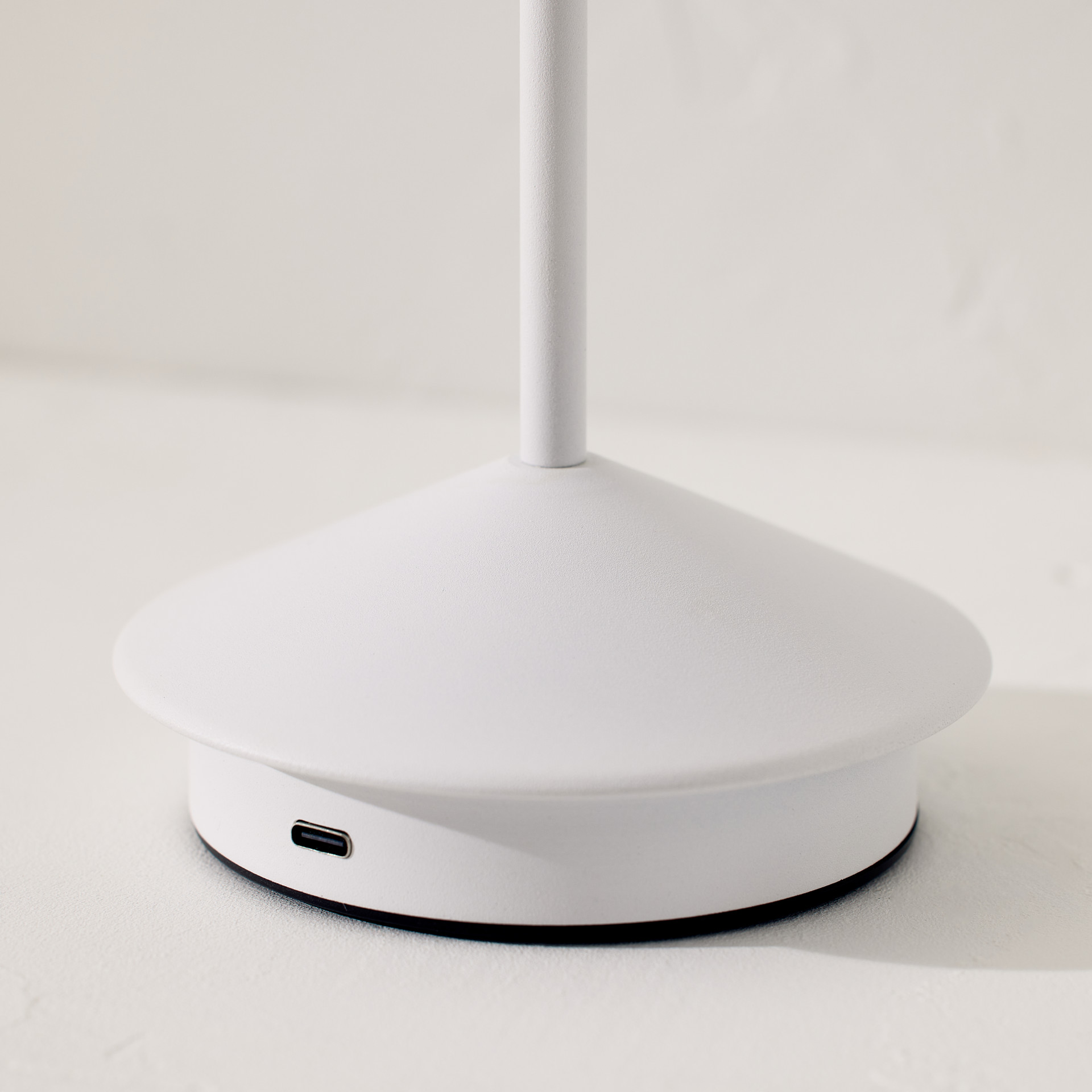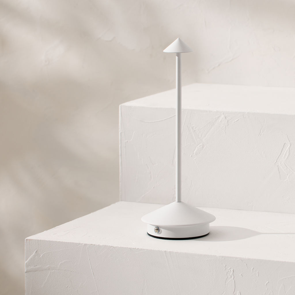 Cette lampe de couleur blanche contemporaine allie style et innovation avec son design épuré et son abat-jour en forme de flèche unique.