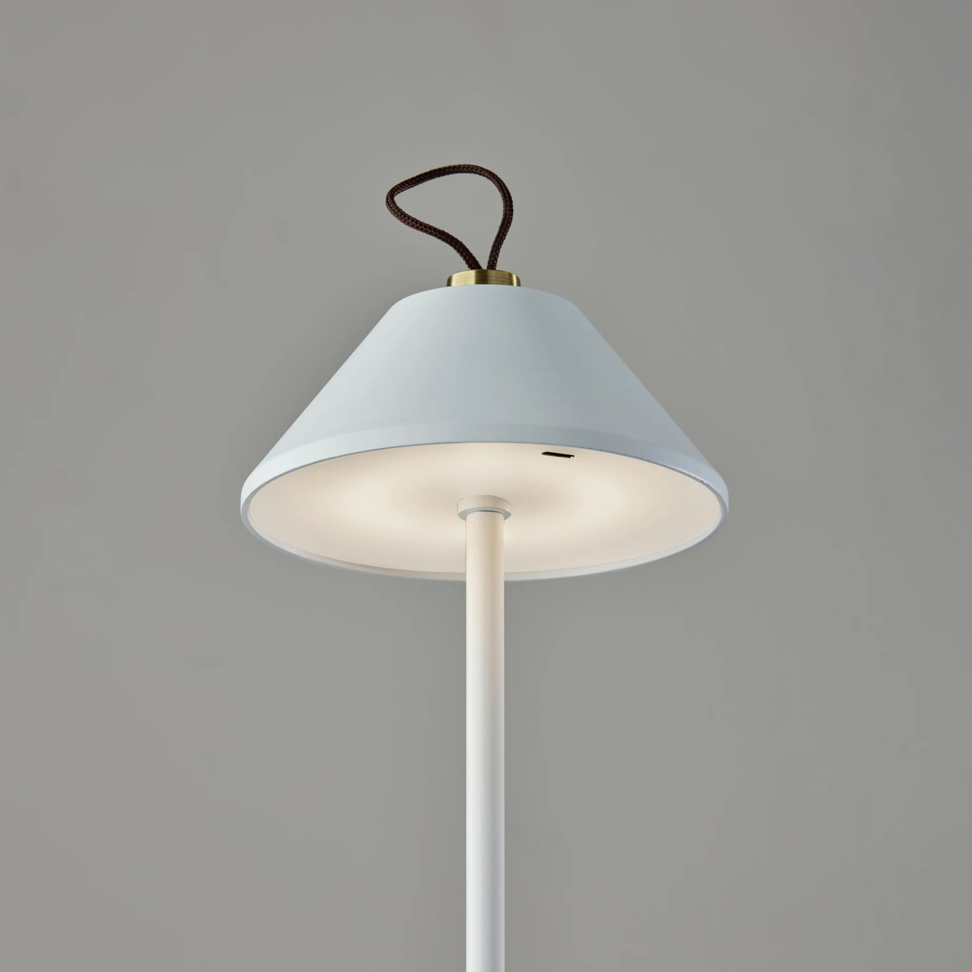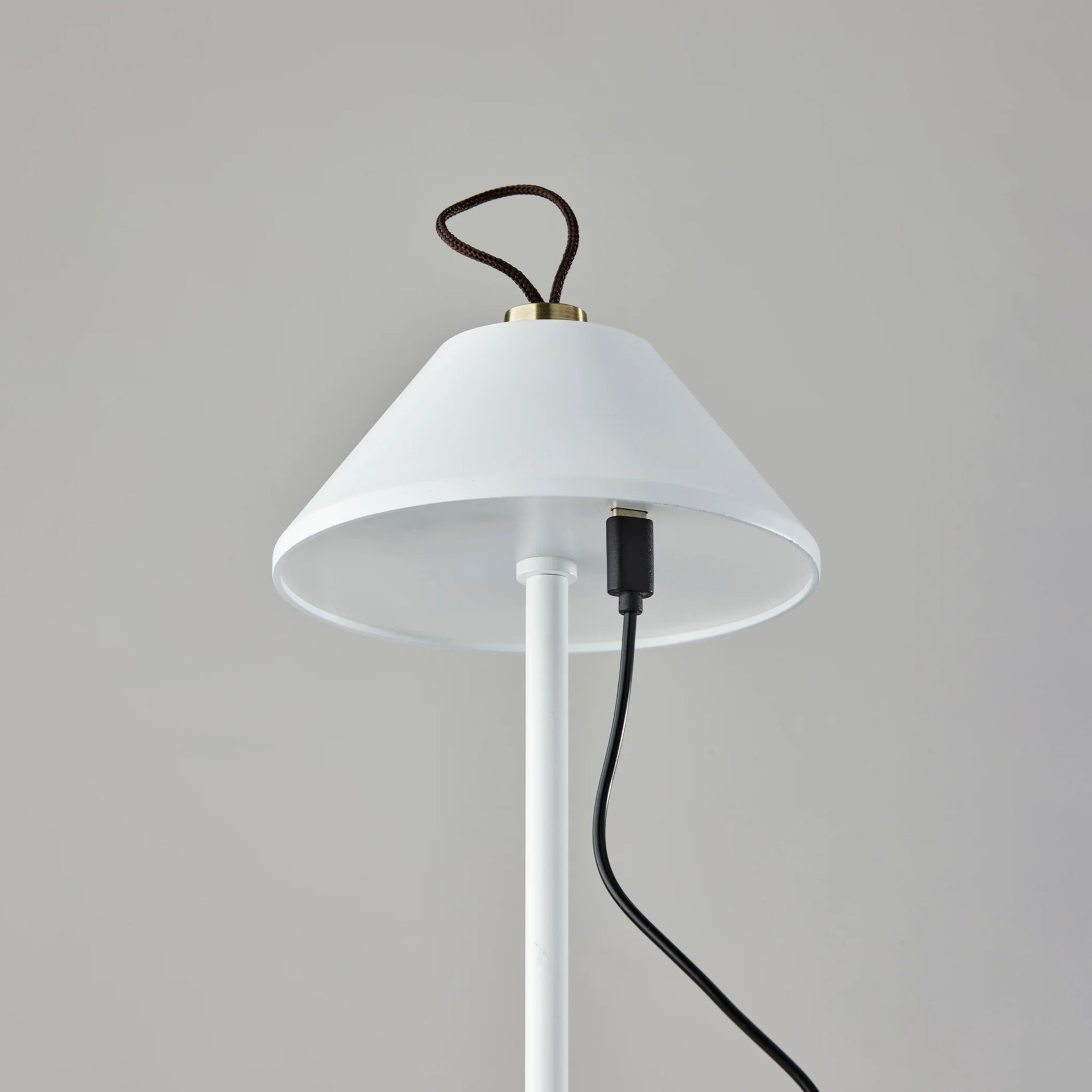 Avec son élégante finition blanche et ses accents en laiton antique, cette lampe complète sans effort tout style de décoration intérieure. L'abat-jour en métal blanc avec diffuseur givré assure un éclairage doux et uniforme, créant une ambiance chaleureuse partout où il est placé.