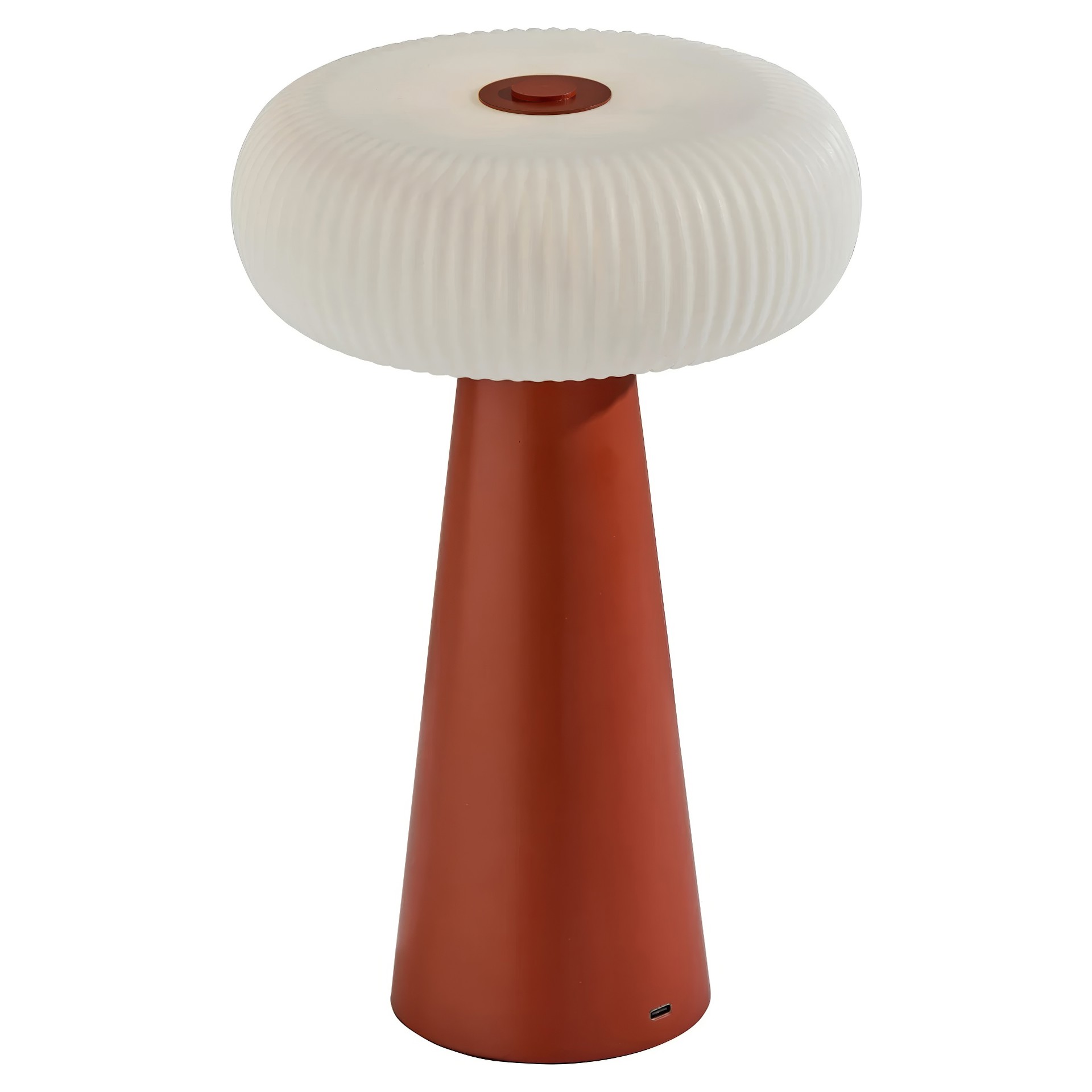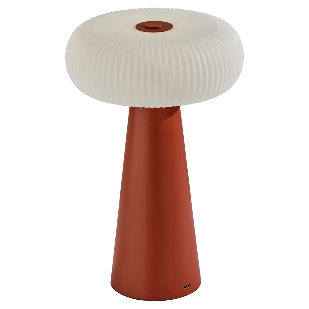 Avec sa finition brun rougeâtre et son abat-jour arrondi en plastique blanc, cette lampe dégage une ambiance chaleureuse et invitante.
