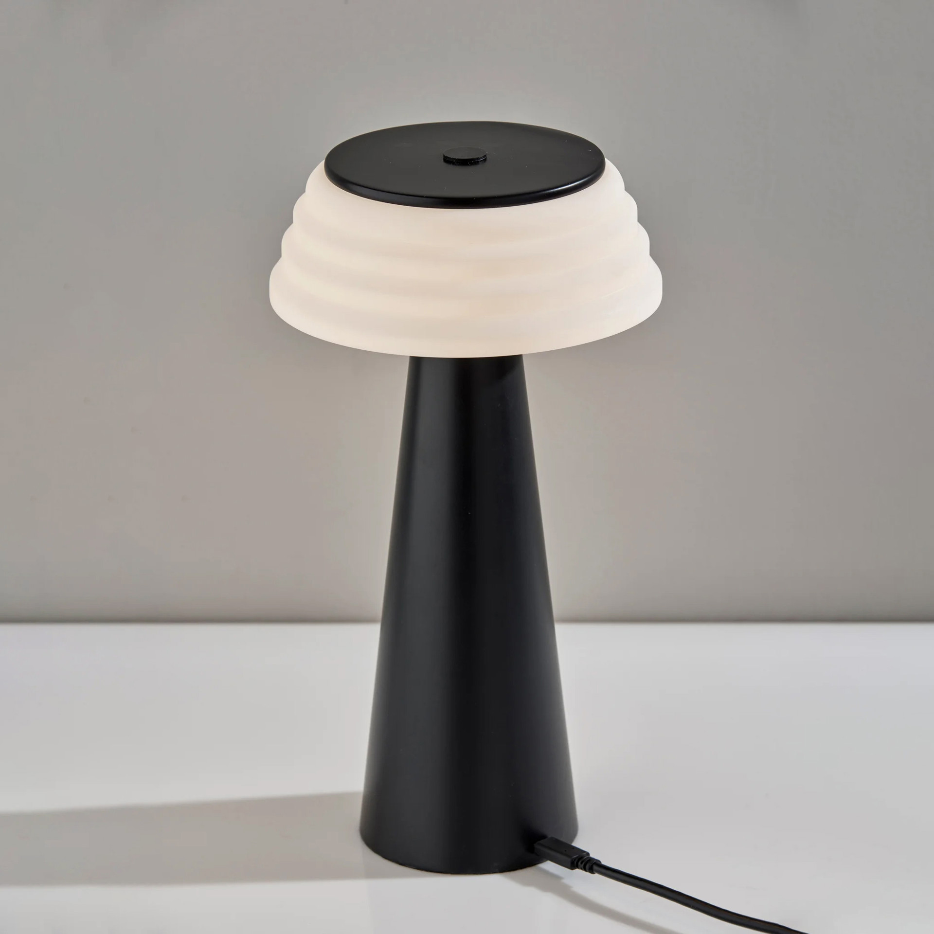 Dotée d'une finition noire élégante et d'un abat-jour en plastique blanc nervuré, cette lampe ajoute une touche d'élégance à n'importe quel espace. D'une hauteur de 12,5 pouces, elle est compacte mais puissante, offrant des niveaux de luminosité réglables grâce à son variateur tactile à 3 niveaux.