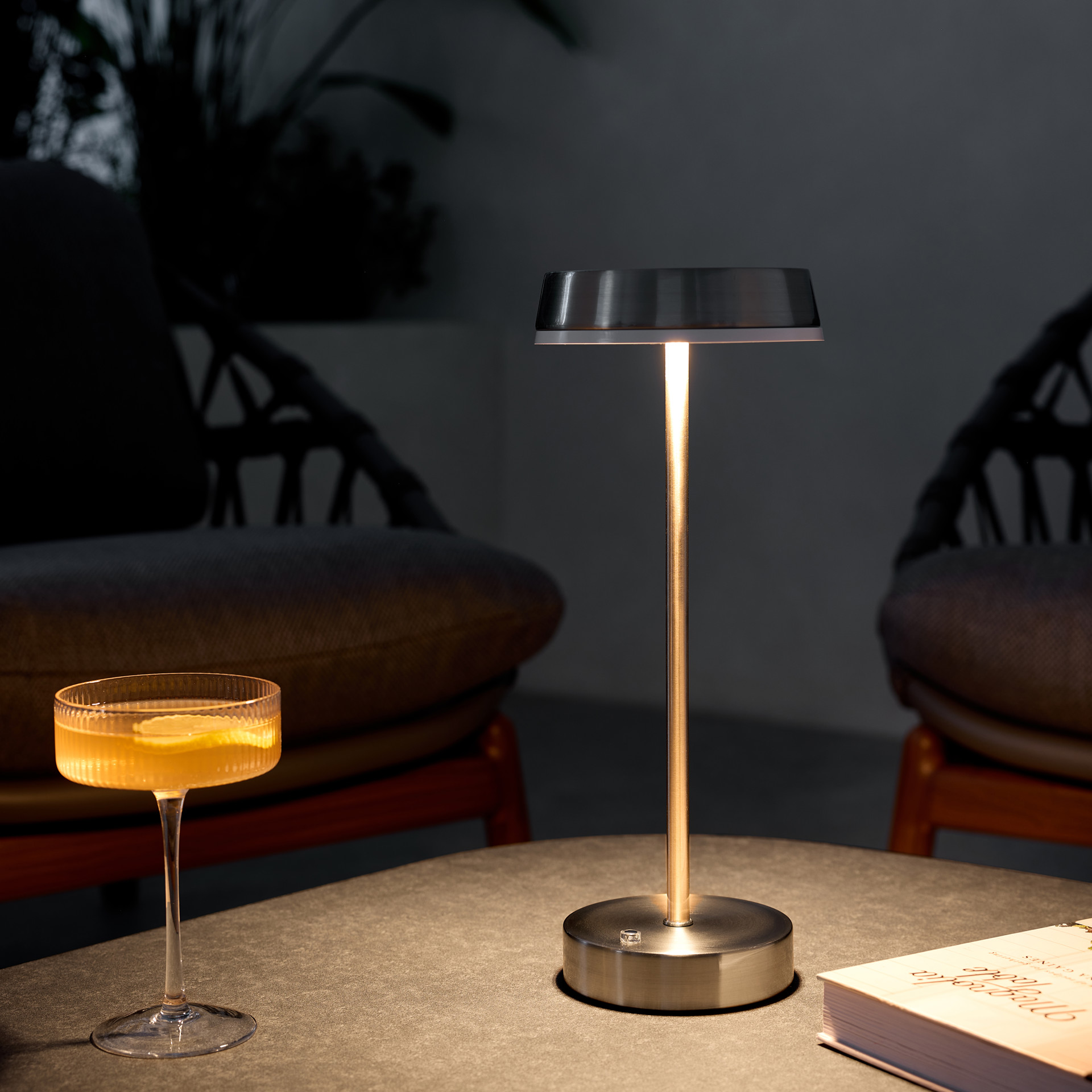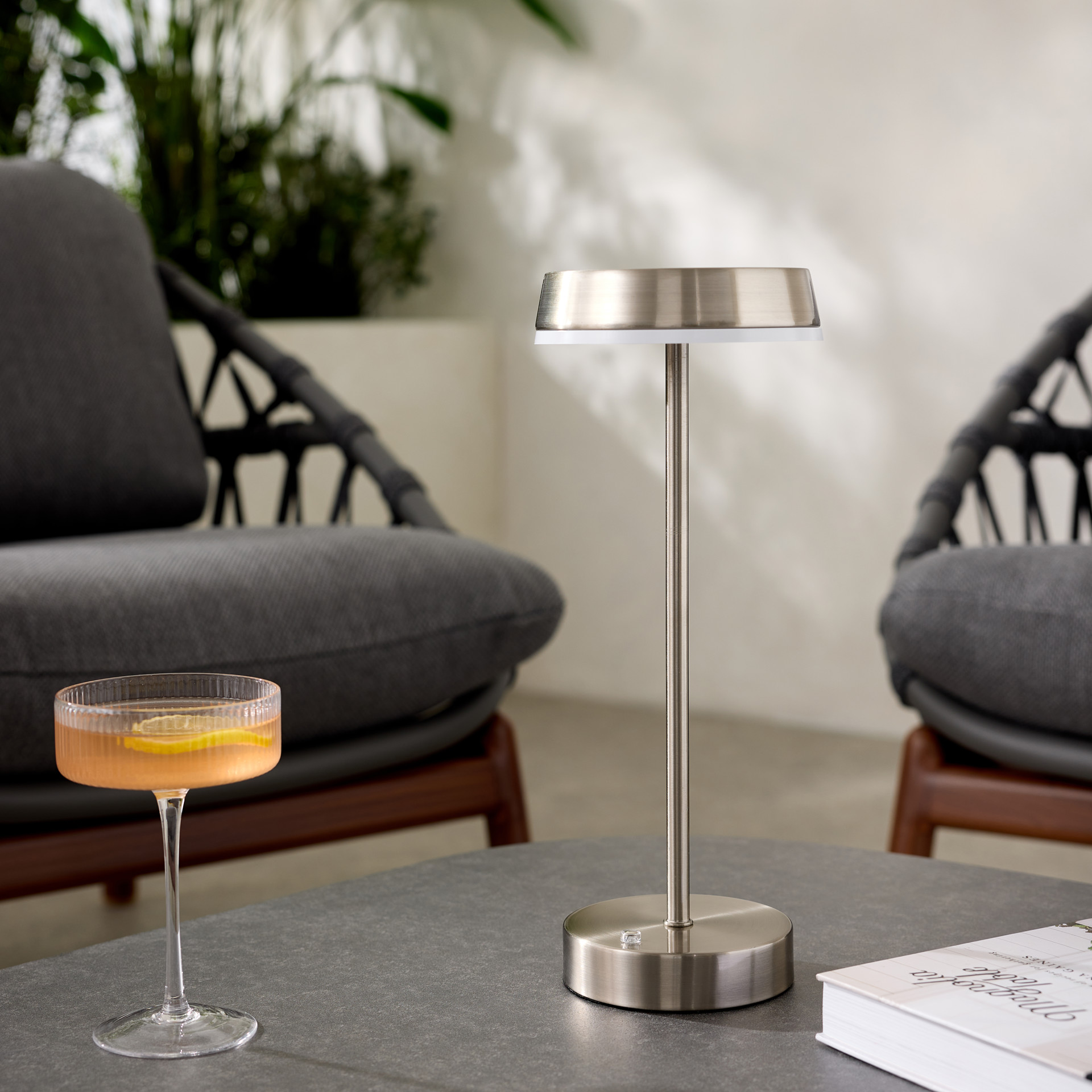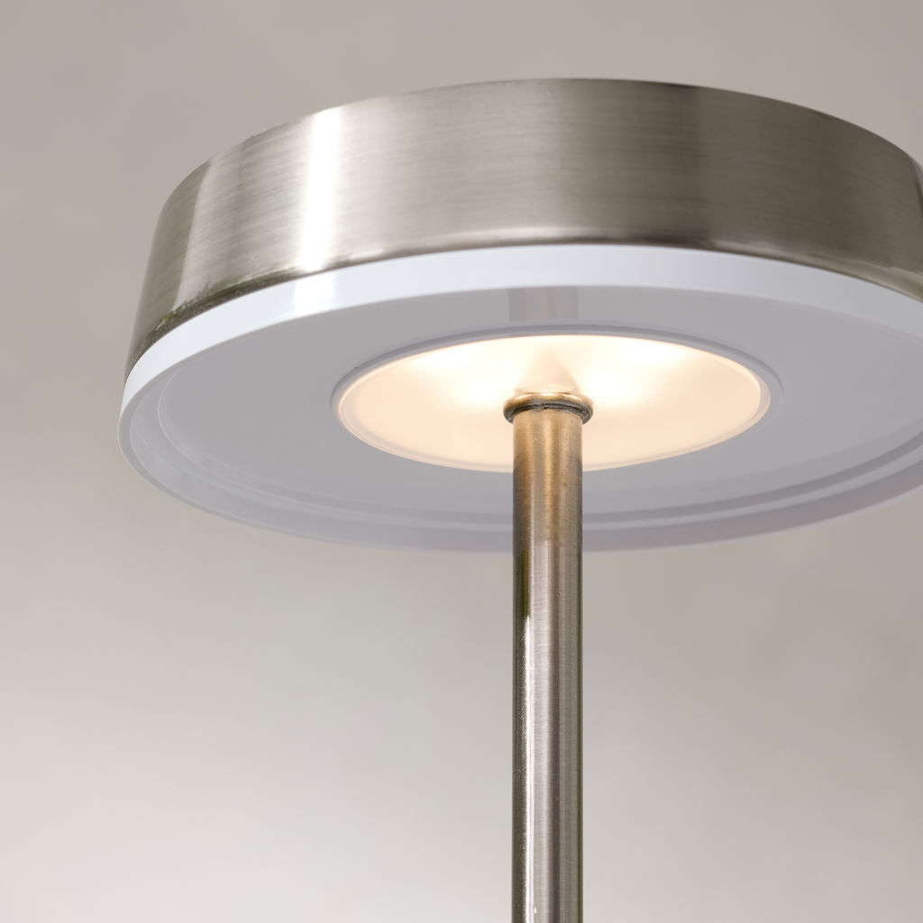 Une solution d'éclairage polyvalente conçue pour une utilisation intérieure et extérieure. Avec sa finition en acier brossé et son abat-jour à disque mince et élégant, cette lampe allie style et fonctionnalité.
