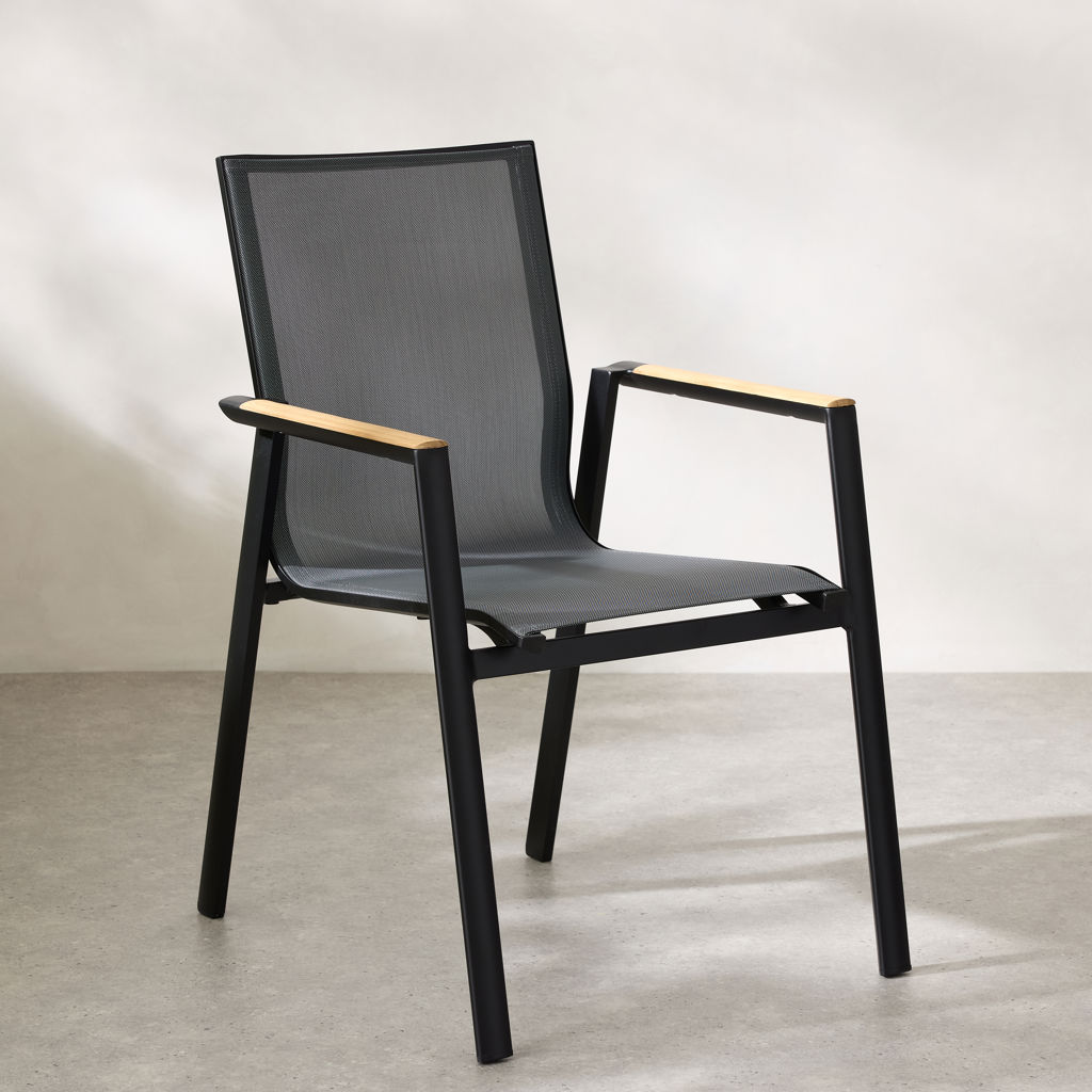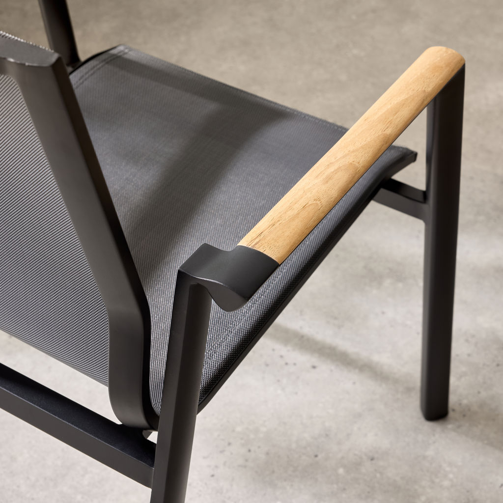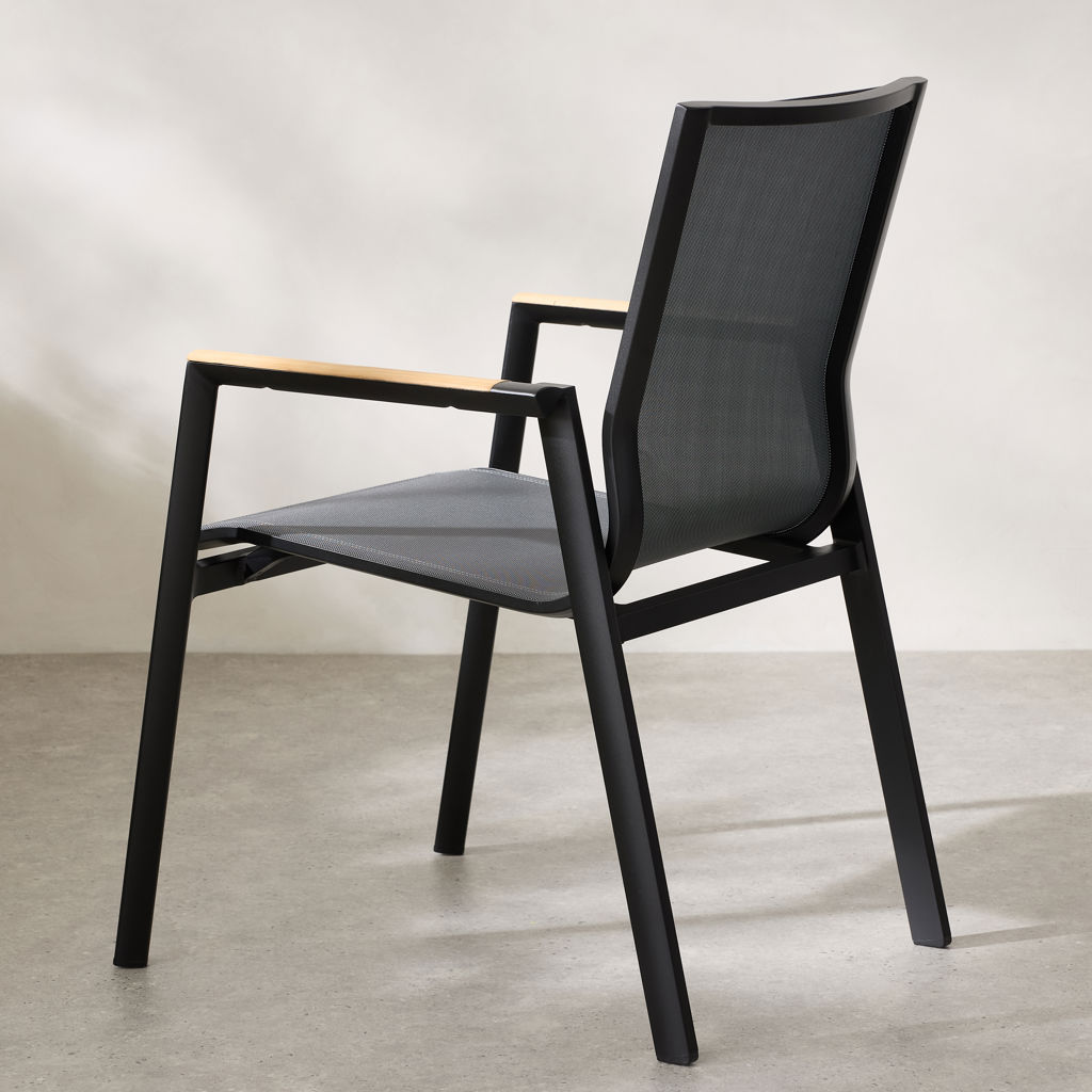 Ajoutez une touche moderne à votre espace avec cette chaise en alluminium avec son détail de bois sur les appuis-bras.  Ce design élégant et pratique est conçu pour offrir un confort optimal tout en étant facile à utiliser.