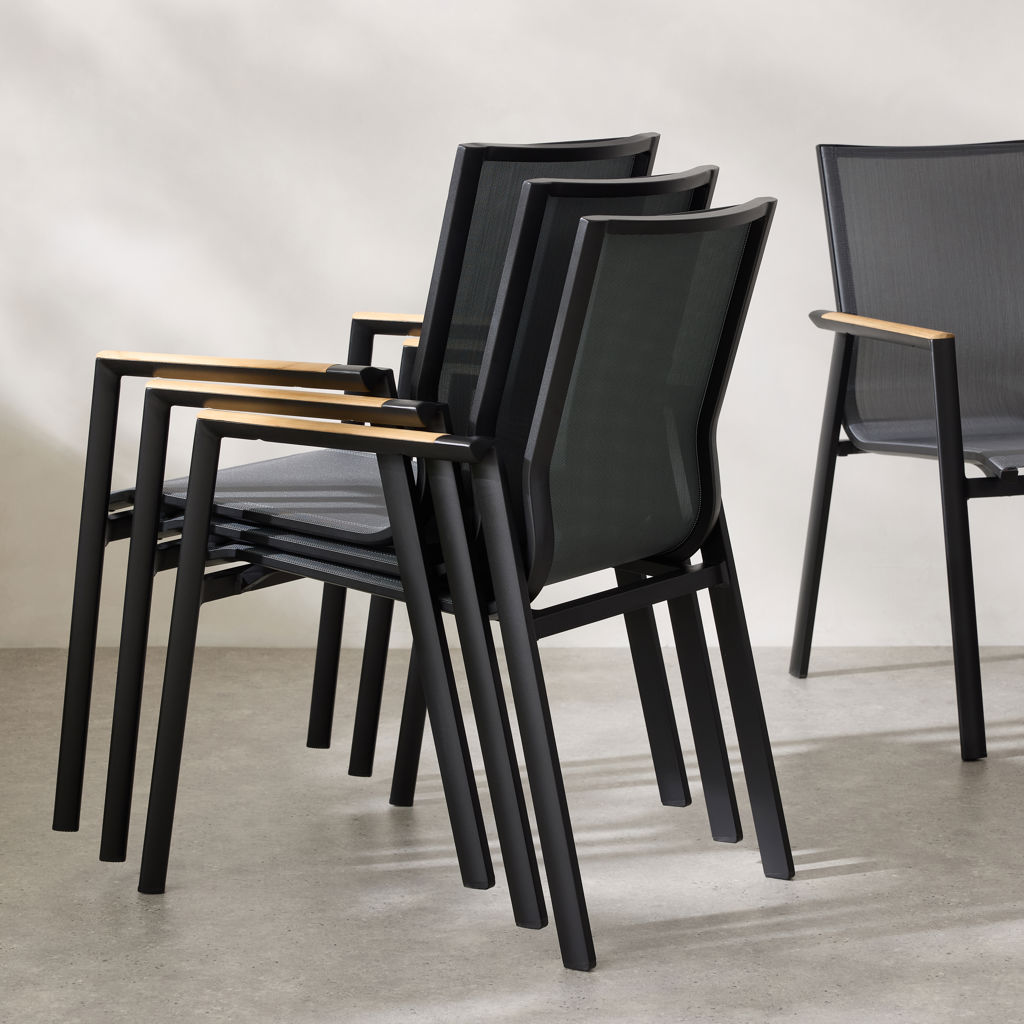 • Chaise de salle à manger d'extérieur empilable Aspen - Noir : 47 X 27 X 14