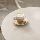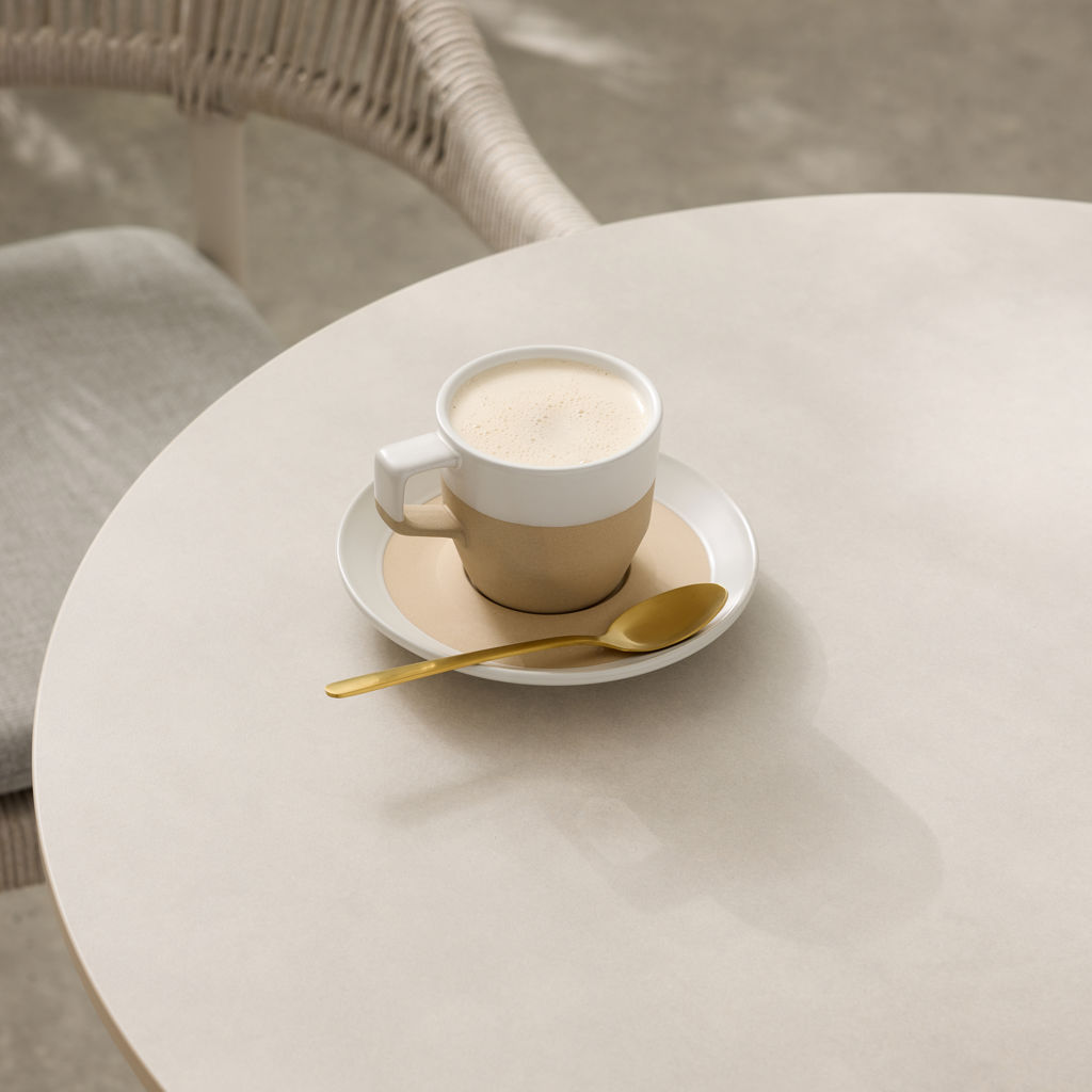 Cette table bistro est chic et élégante avec sa surface en à fini marbré.
