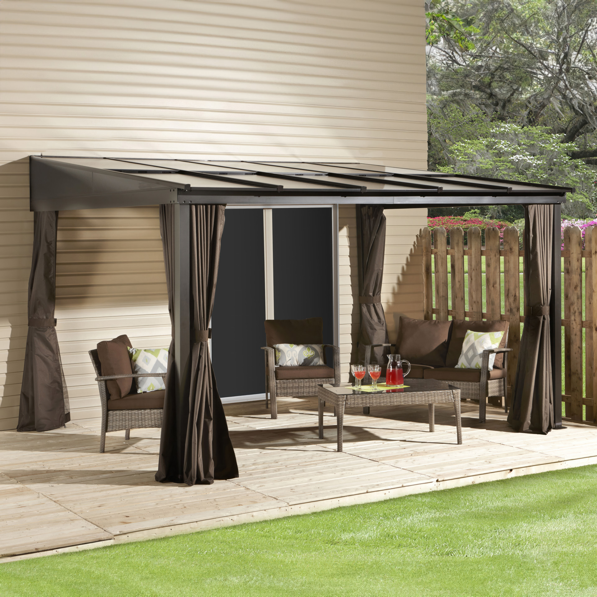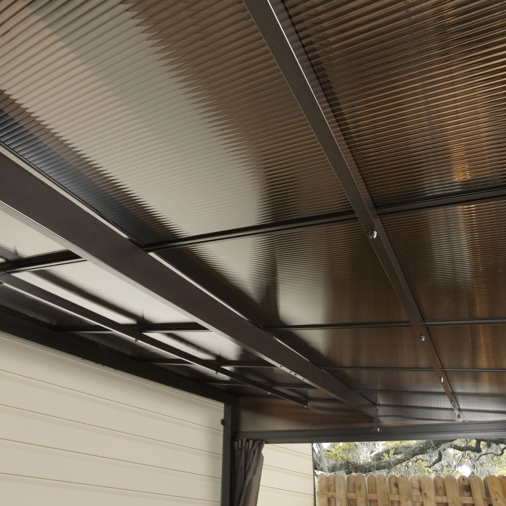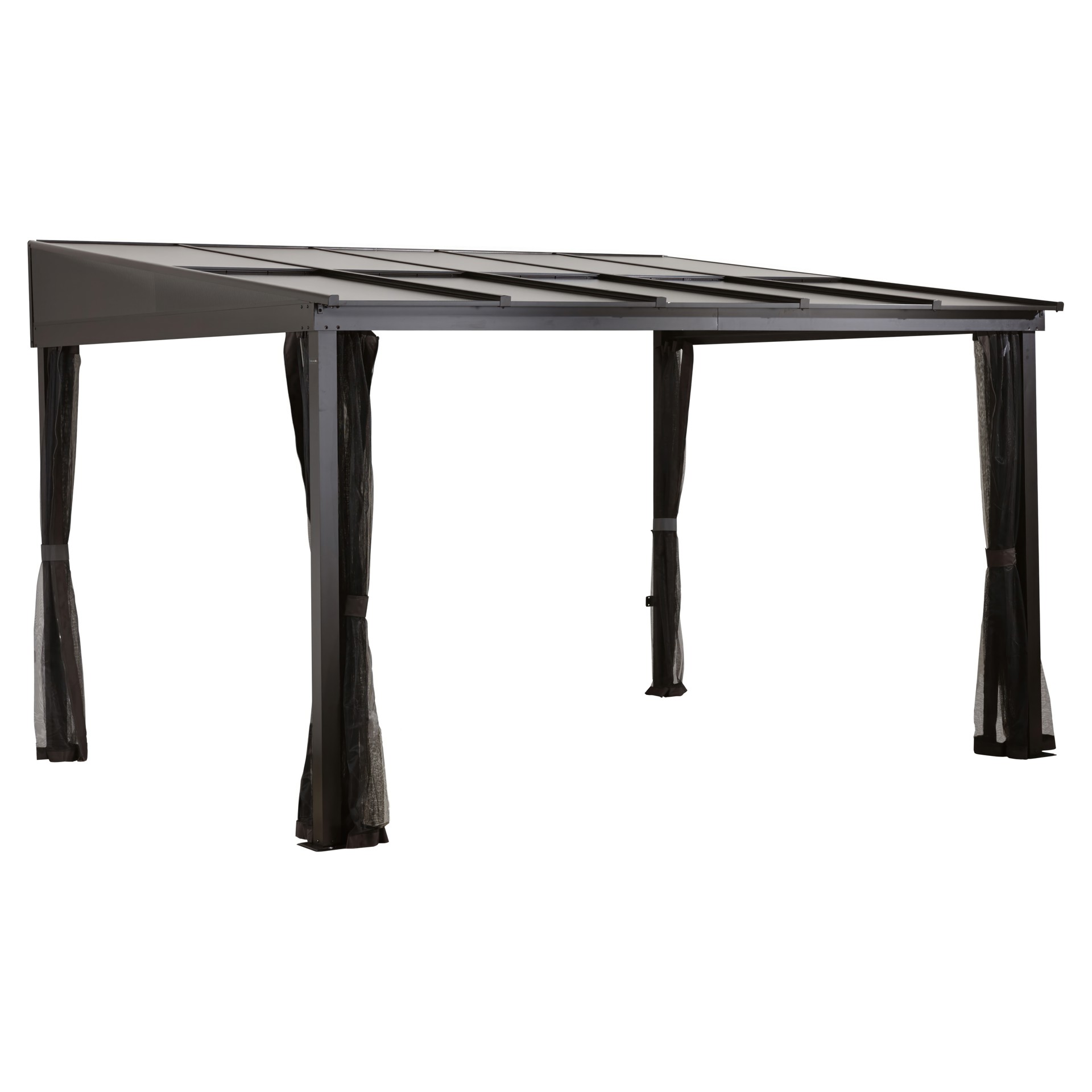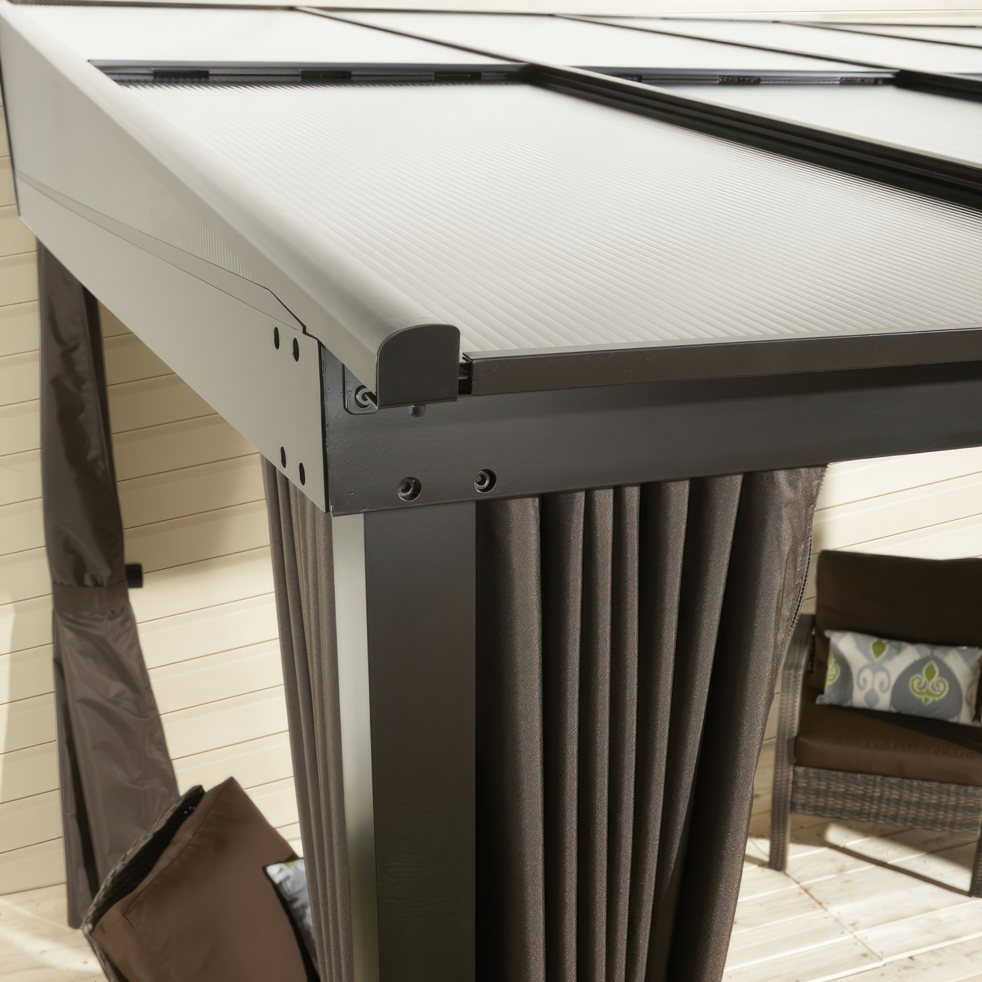 La structure en aluminium durable et le toit fait de panneaux de polycarbonate peuvent être laissés à l’extérieur, peu importe la saison.