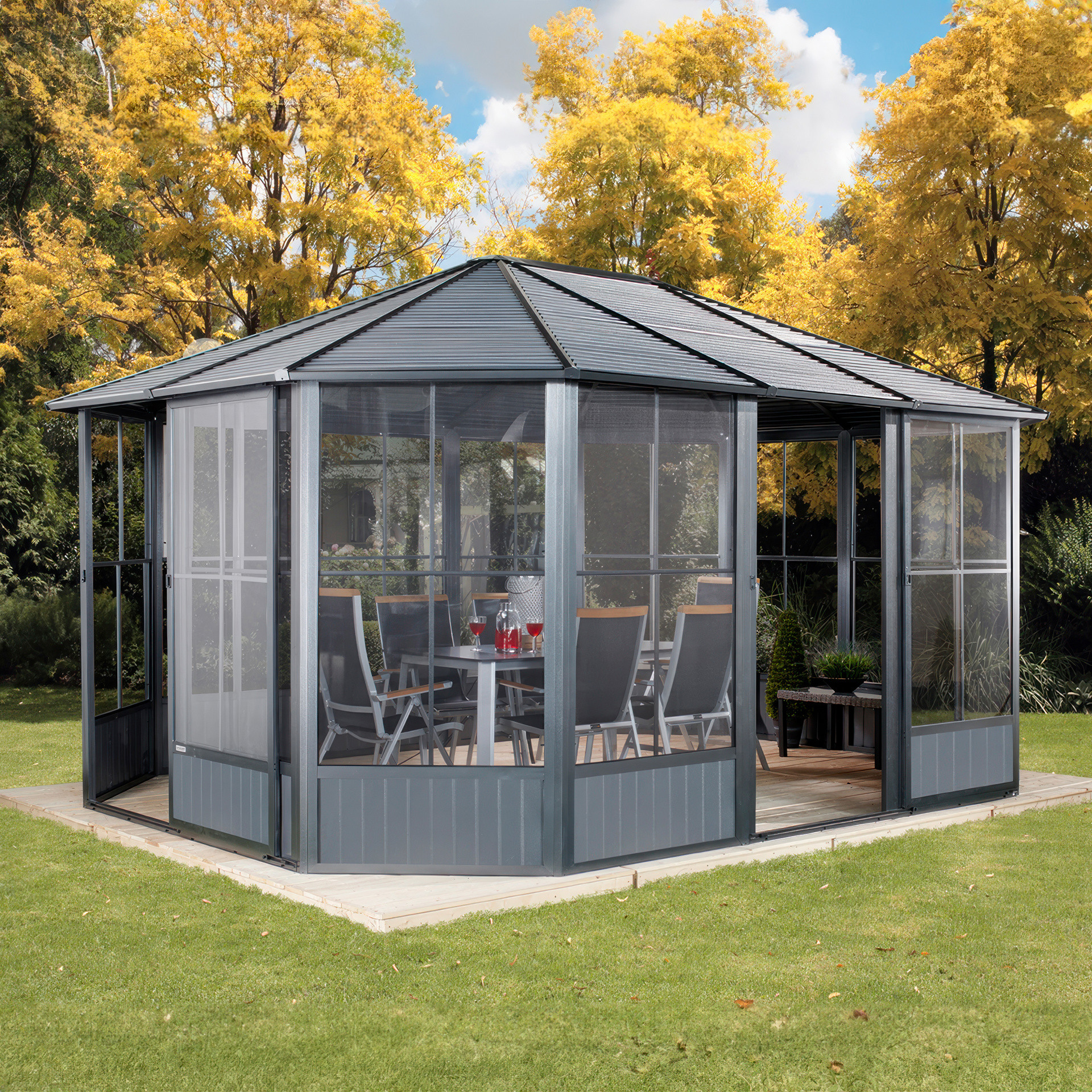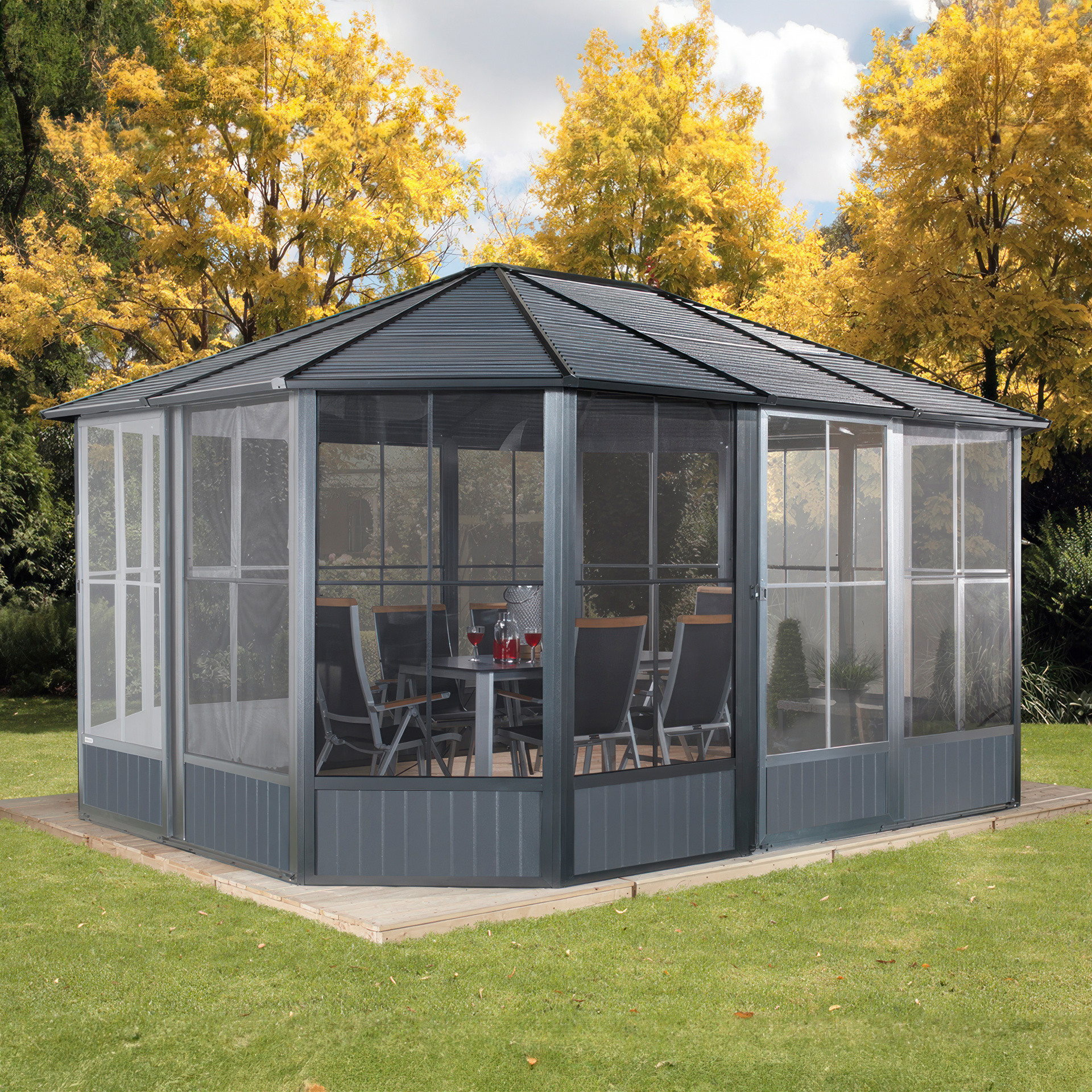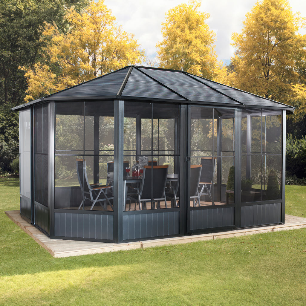 Imaginez votre propre espace de relaxation à l'intérieur d'un solarium pour une protection contre les moustiques, des rayons ultraviolets, de la pluie et de la neige tout en étant en pleine nature.