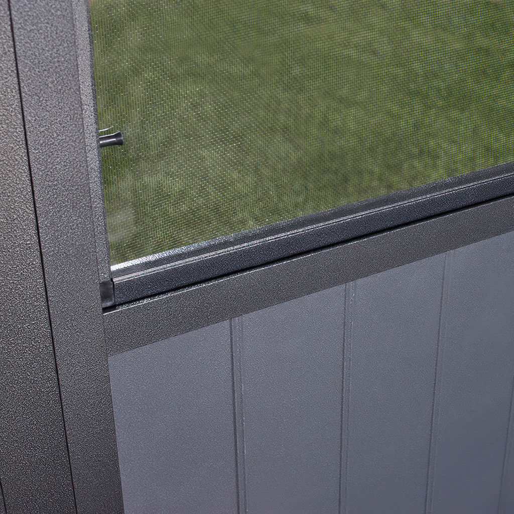 • Fenêtres coulissantes amovibles en PVC clair sur tous les murs (fenêtre fixe dans les portes)