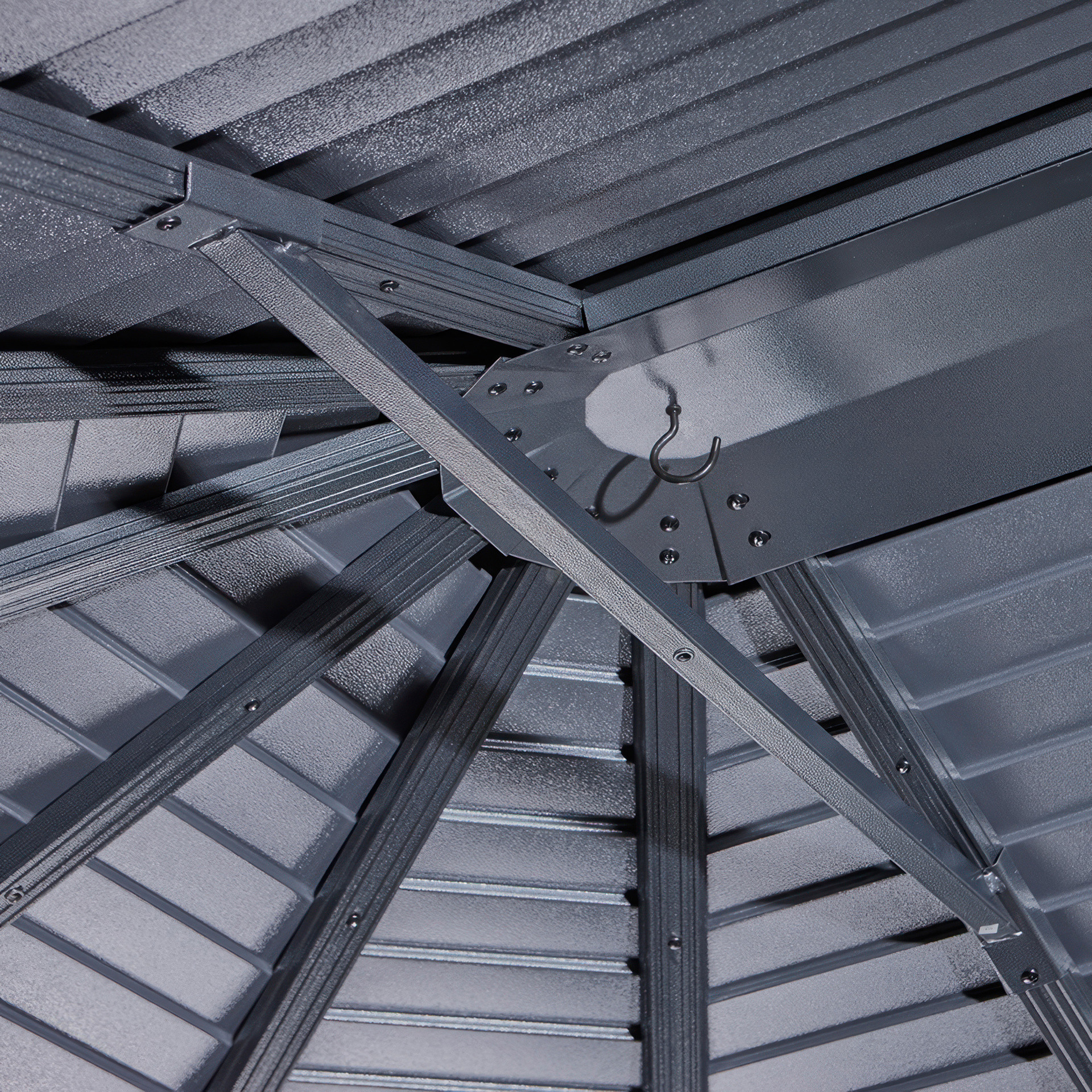 • Toit et panneaux décoratifs au bas des murs en acier galvanisé