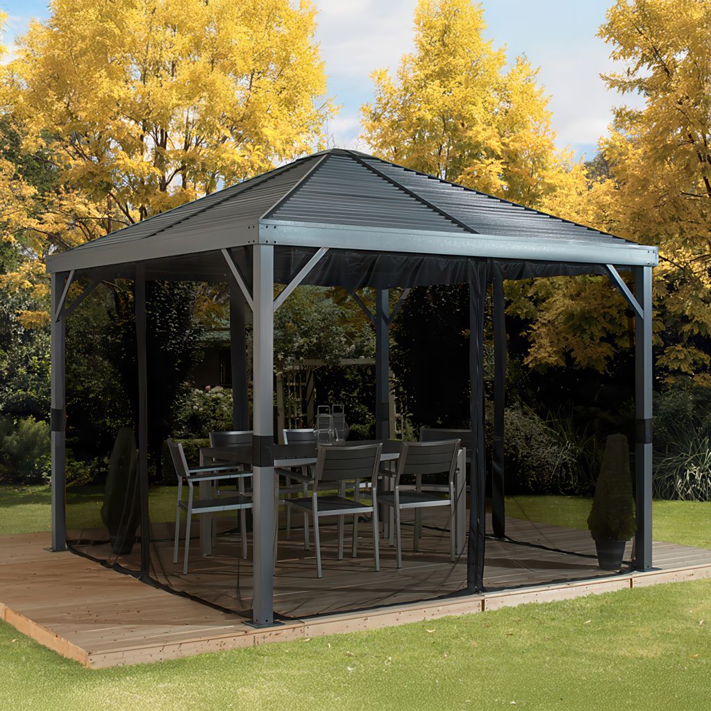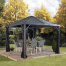Modernisez votre espace de détente extérieur avec l’abri soleil nouvelle génération Sanibel de Sojag. Avec ses lignes épurées, sans fioritures, il est aussi pratique qu'attrayant. Proposé avec trois types de toits différents, il saura satisfaire le designer qui sommeille en vous.