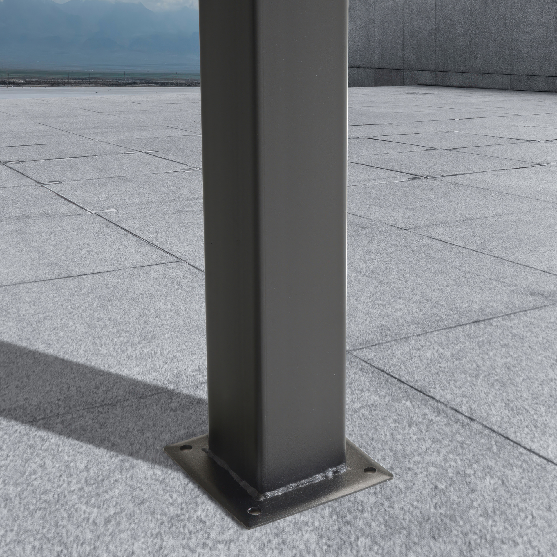Cadre en acier enduit de poudre avec un toit en polyester bronze ignifuge en 3 pièces, toit ventilé, auvent de 10 pi x 6 pi, poteaux d'angle carrés de 2,4 po x 2,4 po, quatre fermes de poutres transversales extérieures de 4 po de large, 8 poutres de support de toit