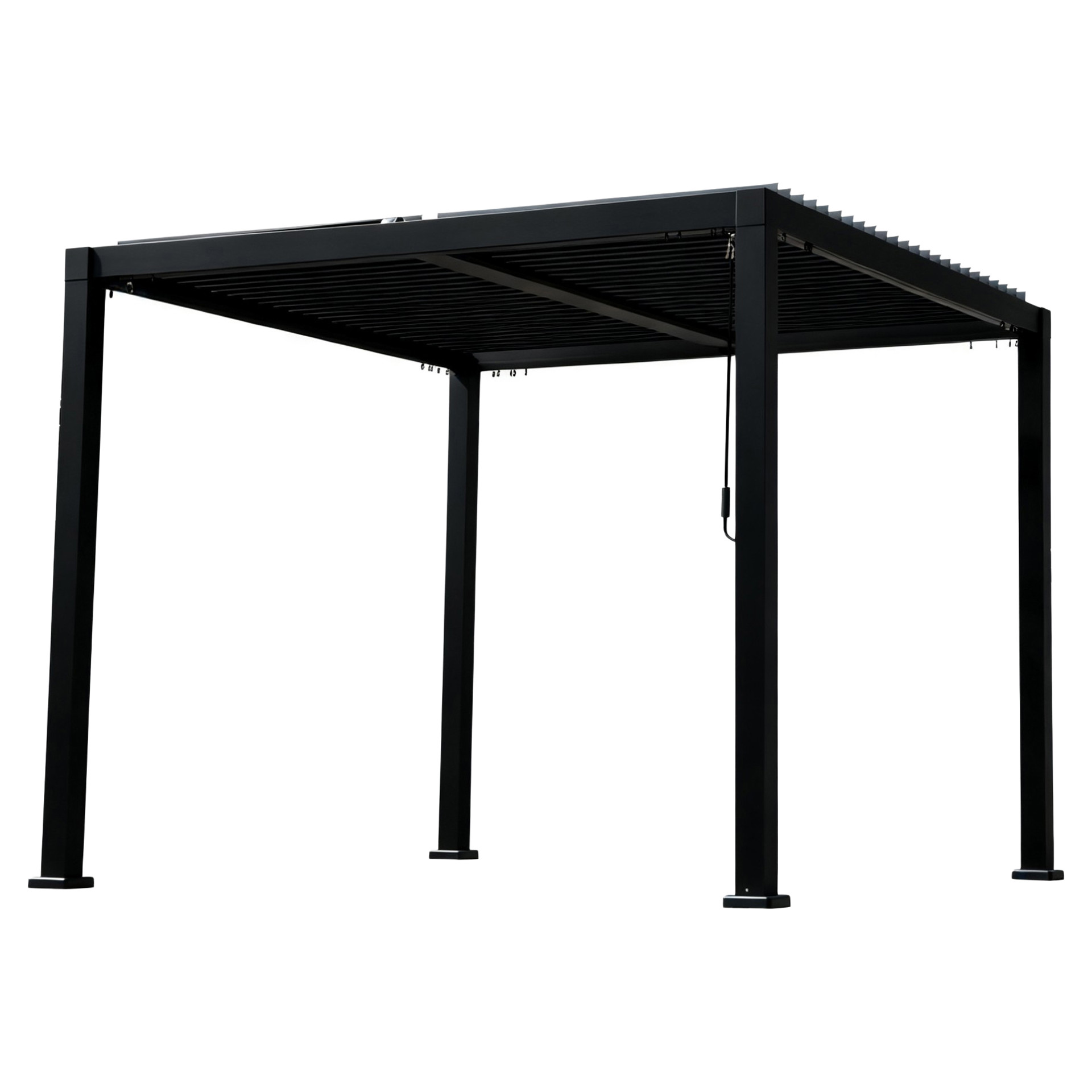 Son toit à lattes ajustables permet de créer une zone ombragée agréable tout en laissant circuler l’air, idéale pour profiter de la terrasse ou du jardin lors des journées ensoleillées.