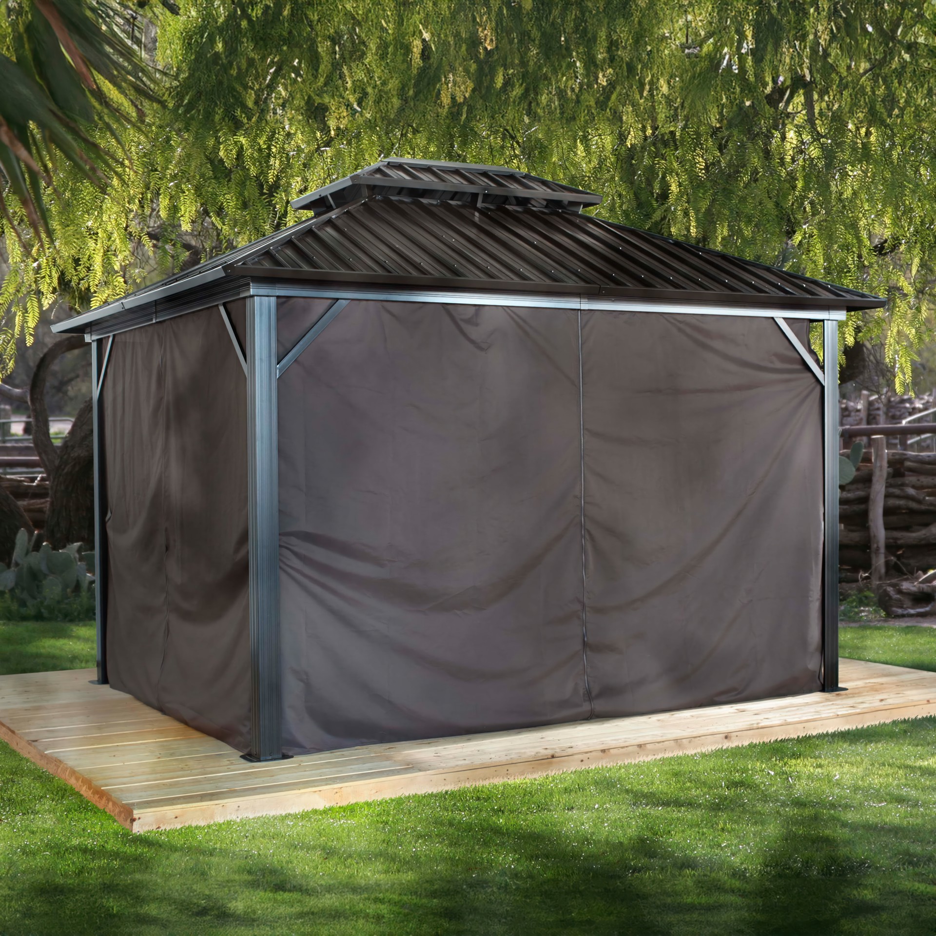 Ces rideaux d'été sont l'accessoire parfait pour votre abri Sojag.
