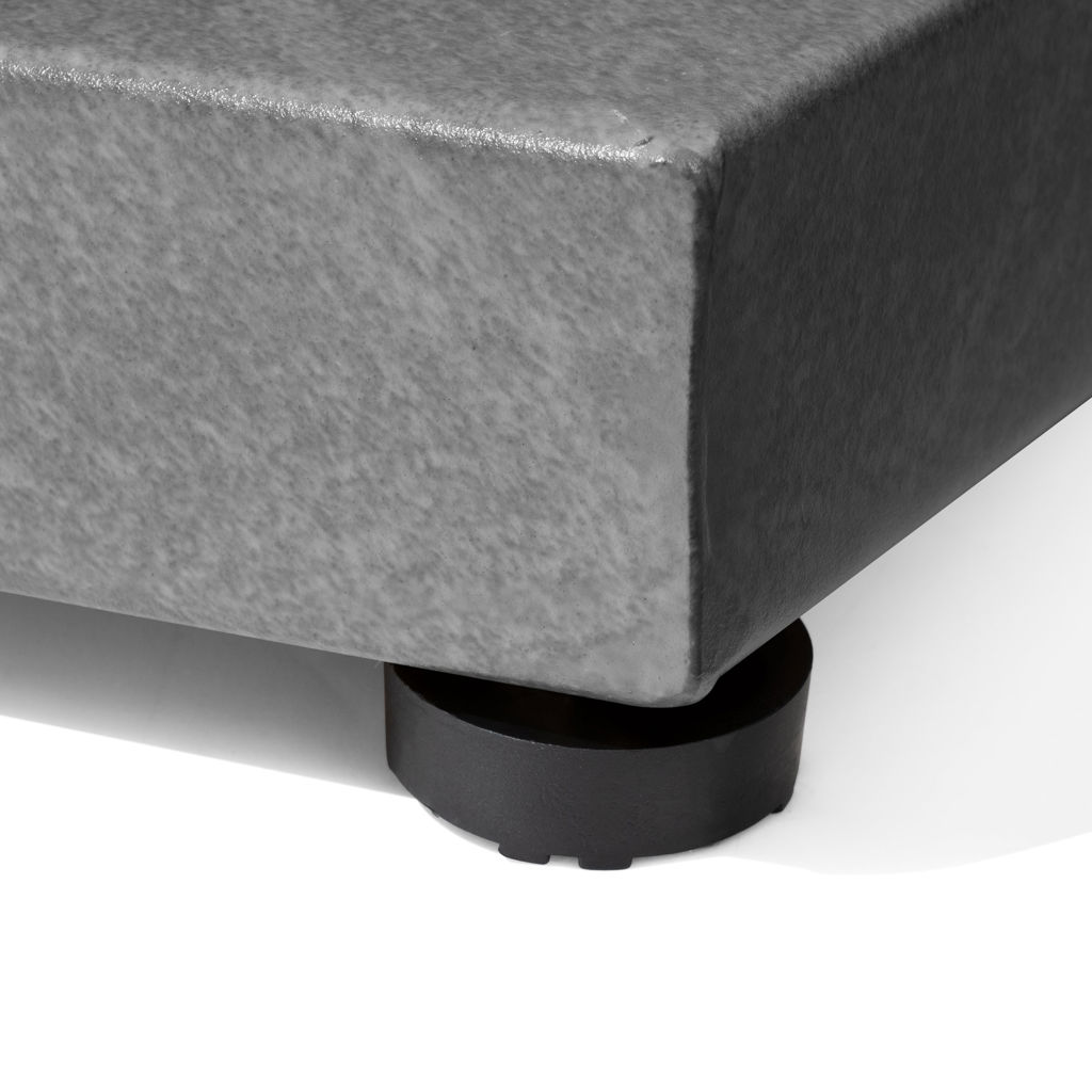 Deux roulettes pratiques sur un côté facilitent le déplacement, tandis que les coussinets ajustables aux quatre coins garantissent une stabilité optimale sur toutes les surfaces.