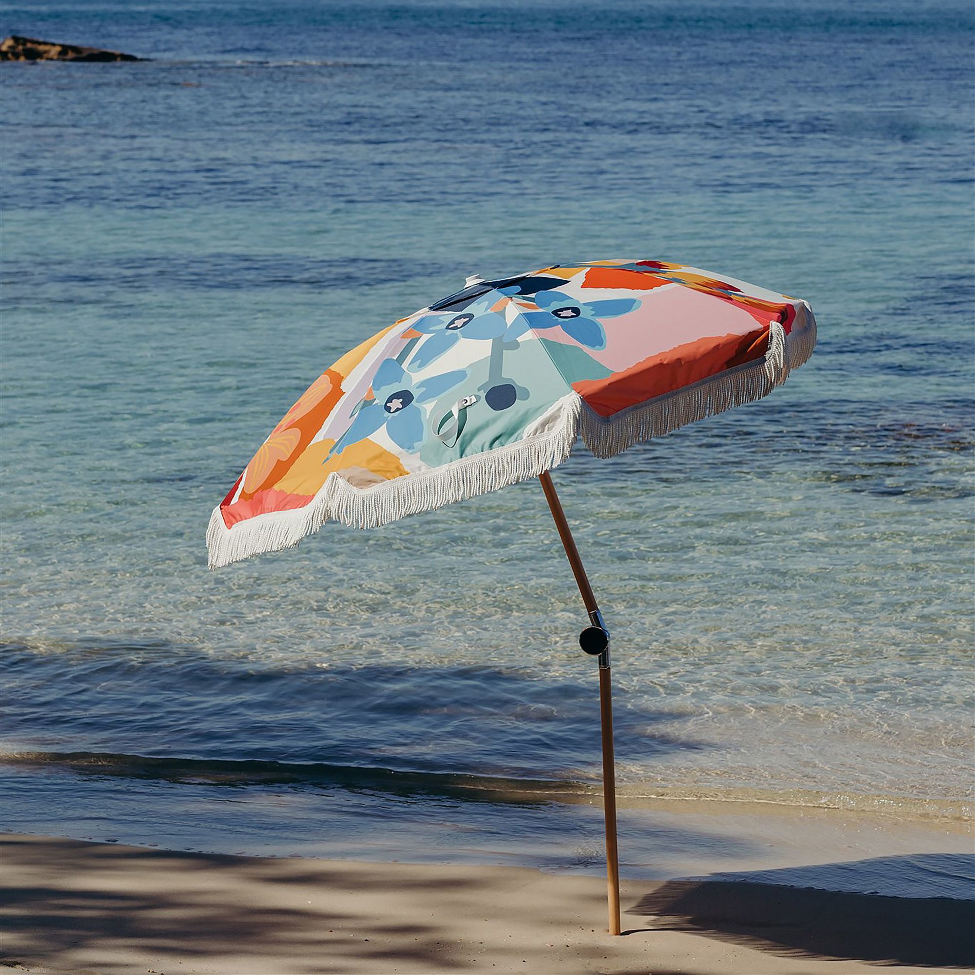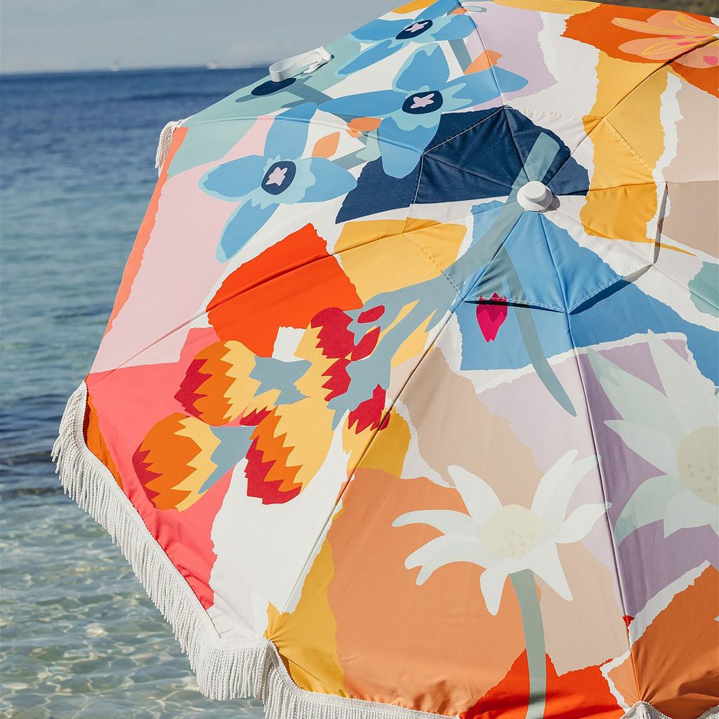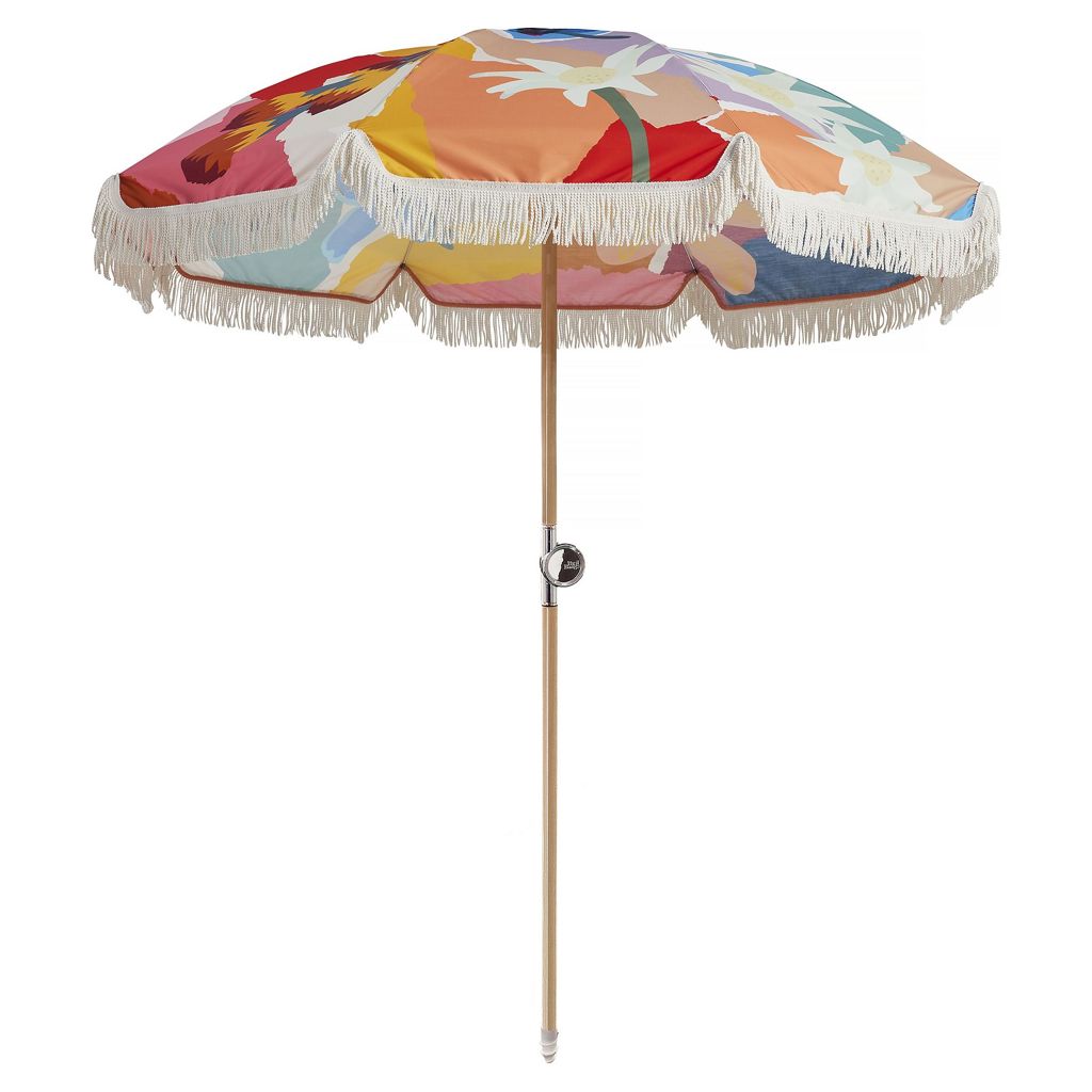 Voici le parasol Premium Beach Umbrella de Basil Bangs - une belle combinaison d'accessoires haut de gamme et de matériaux naturels.