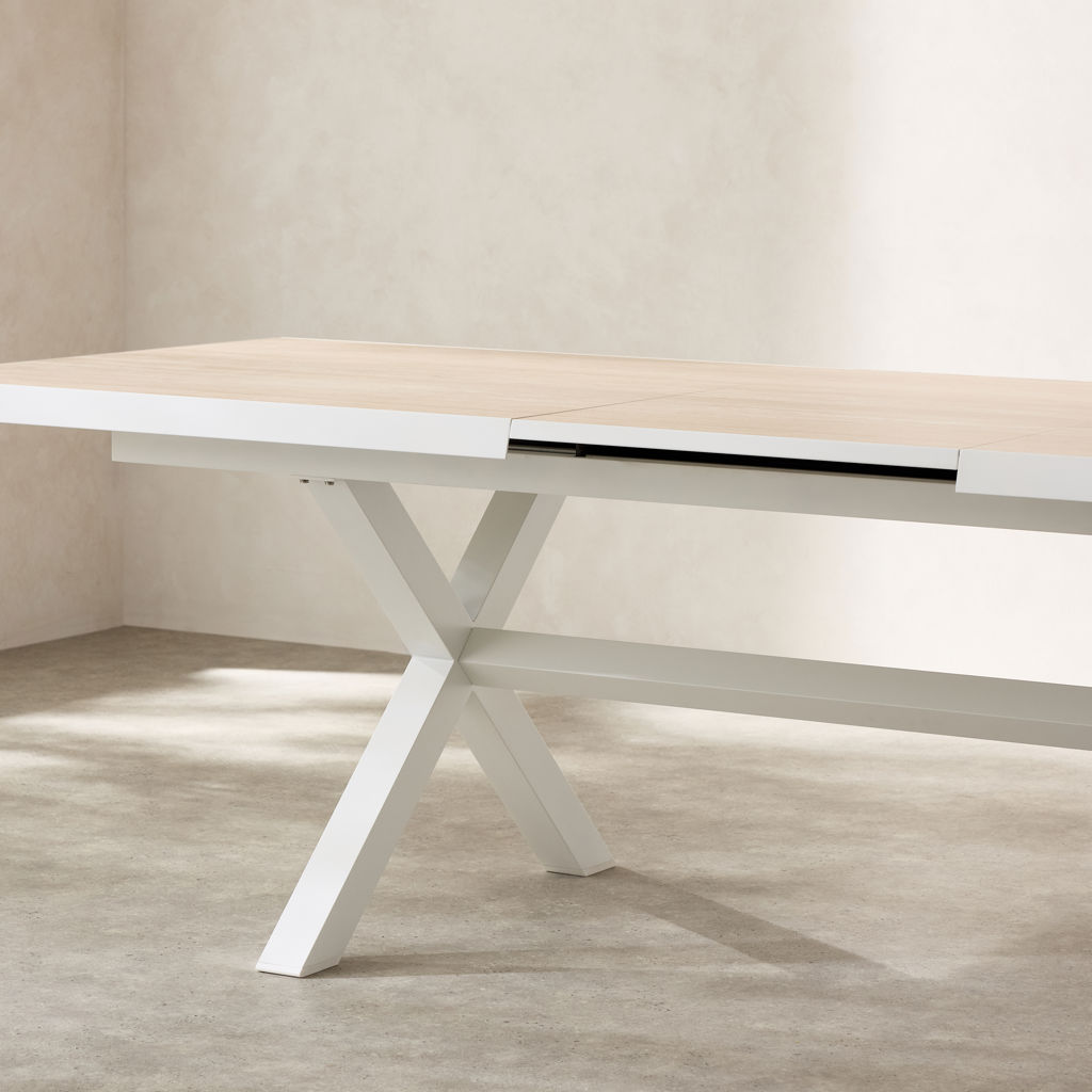 La table extensible s’adapte facilement à vos besoins, offrant plus d’espace lorsque vous recevez famille et amis, tout en conservant une silhouette raffinée au quotidien. Résistant et facile d’entretien, cet ensemble est conçu pour profiter pleinement de la belle saison.