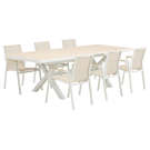 Créez un espace repas élégant et convivial avec cet ensemble à dîner d’extérieur comprenant une table extensible et six chaises assorties. Son design épuré, combinant une structure en aluminium et des assises en textilène, apporte une touche moderne et lumineuse à votre terrasse ou patio.