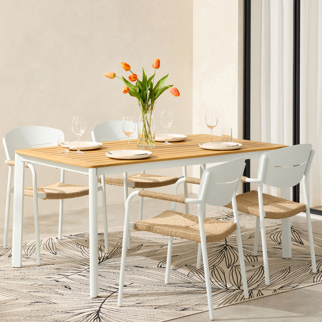 Cet ensemble de salle à manger au design moderne et minimaliste allie sans effort fonctionnalité et élégance. Son cadre en aluminium garantit la durabilité, ce qui le rend idéal pour les repas en plein air.