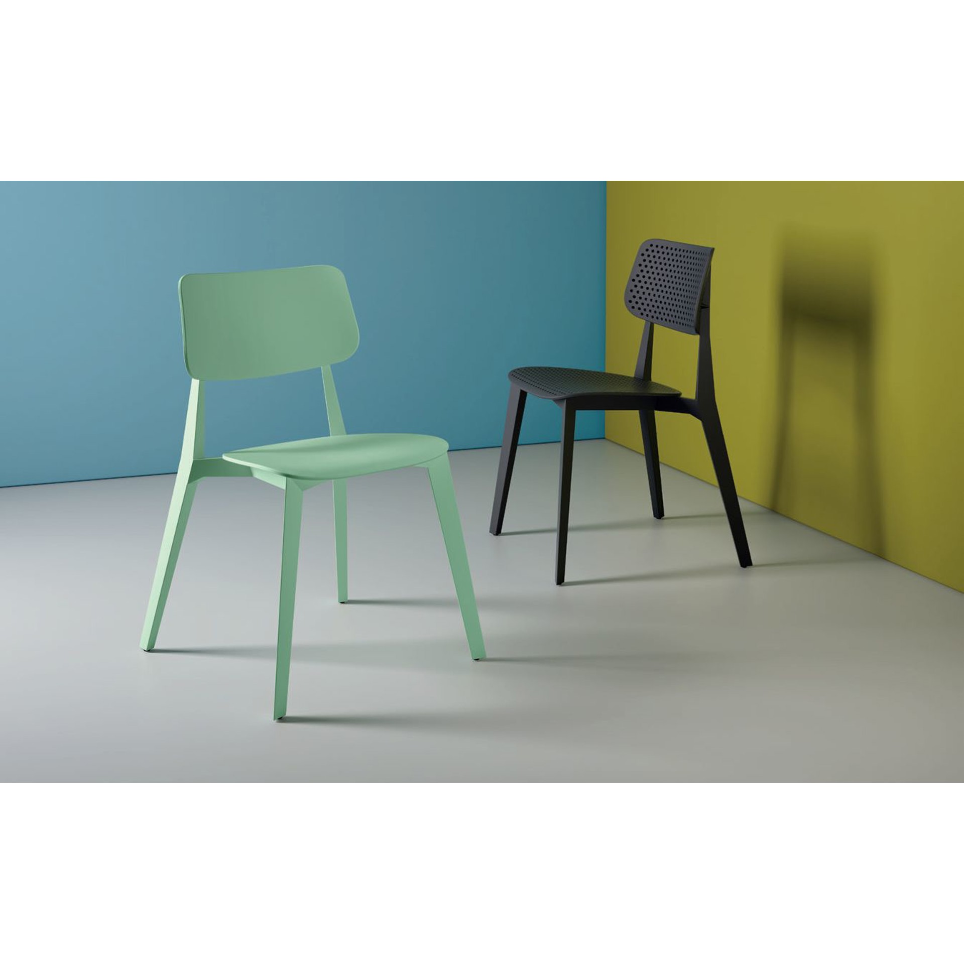 Les volumes triangulaires en forme d'étoile sur les parties arrière et inférieure soulignent la fonction porteuse de ces structures et forment un agréable contraste esthétique avec l'ergonomie douce et accueillante de l'assise et du dossier.