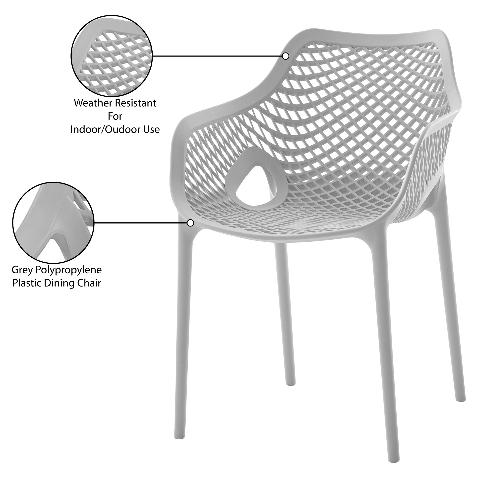 Chaise de salle à manger d'extérieur Mykonos Meridian Furniture 329GREY