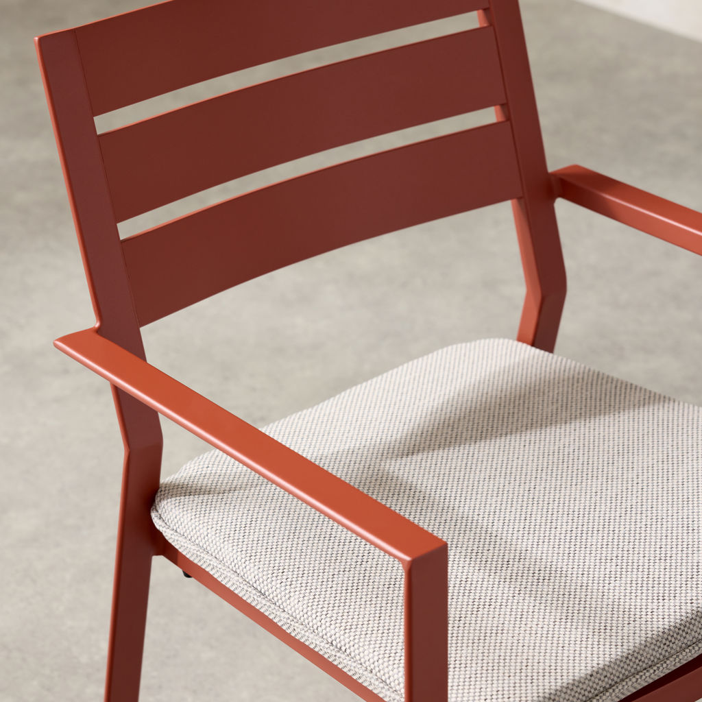 Son dossier à lattes apporte un bon soutien, tandis que le coussin d’assise moelleux et déhoussable, assure un confort optimal pour vos moments de détente en plein air.