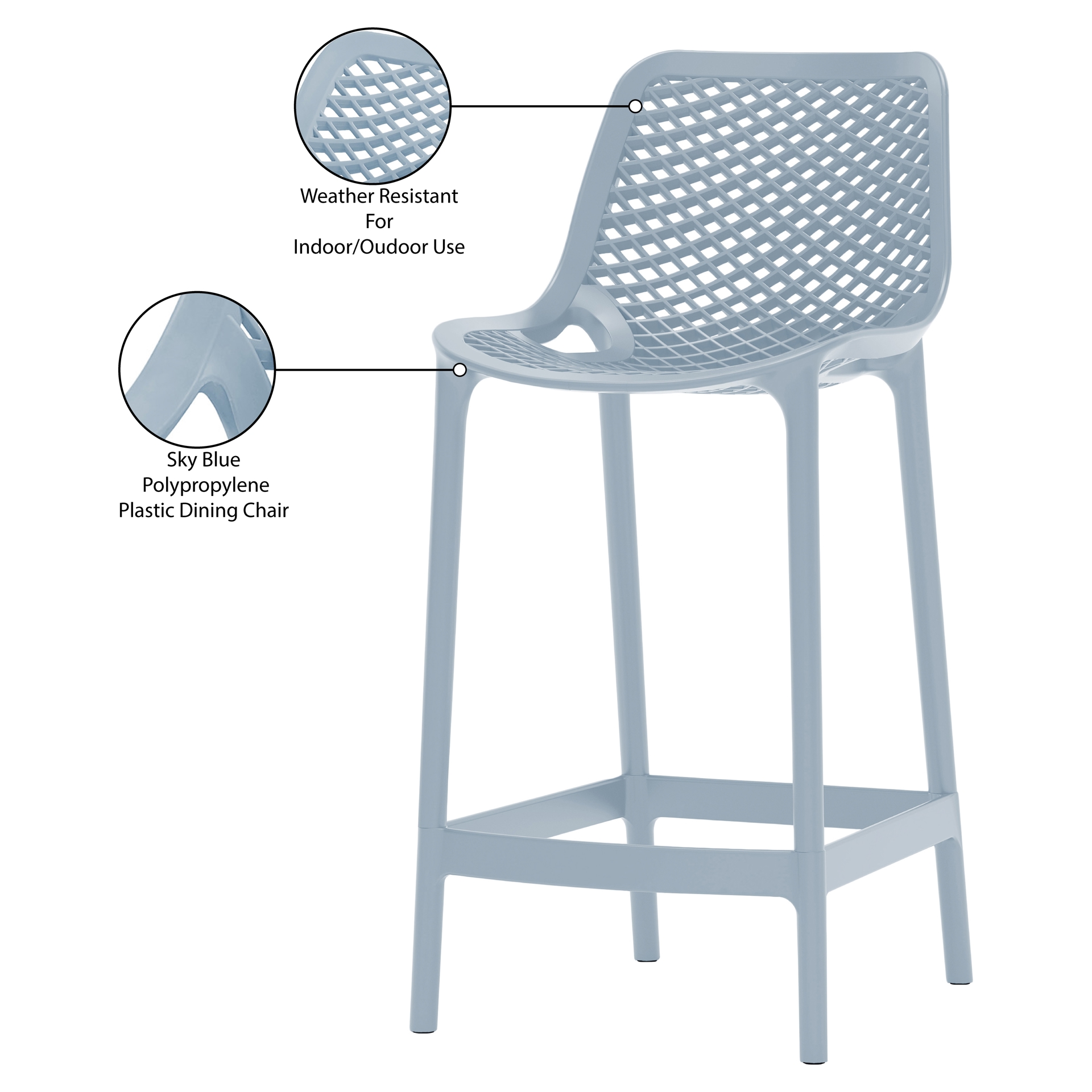 Fabriquée à partir de plastique polypropylène bleu pâle, cette chaise est suffisamment robuste et durable pour durer des années dans votre maison.