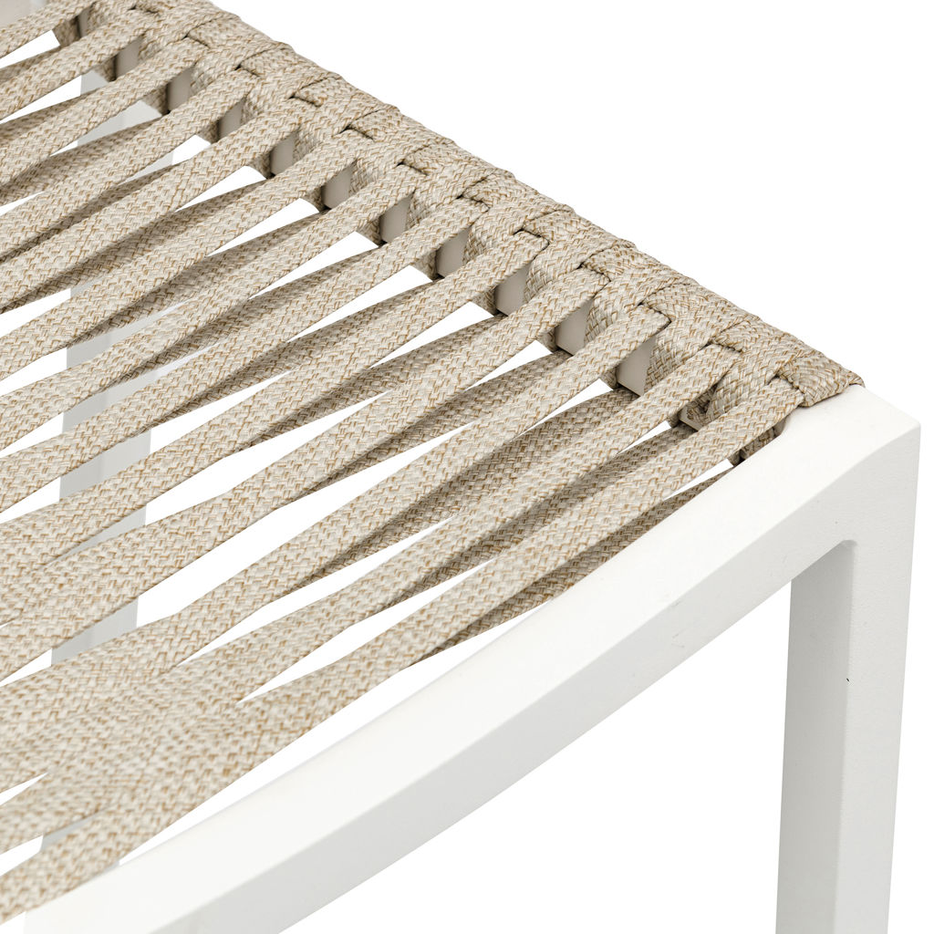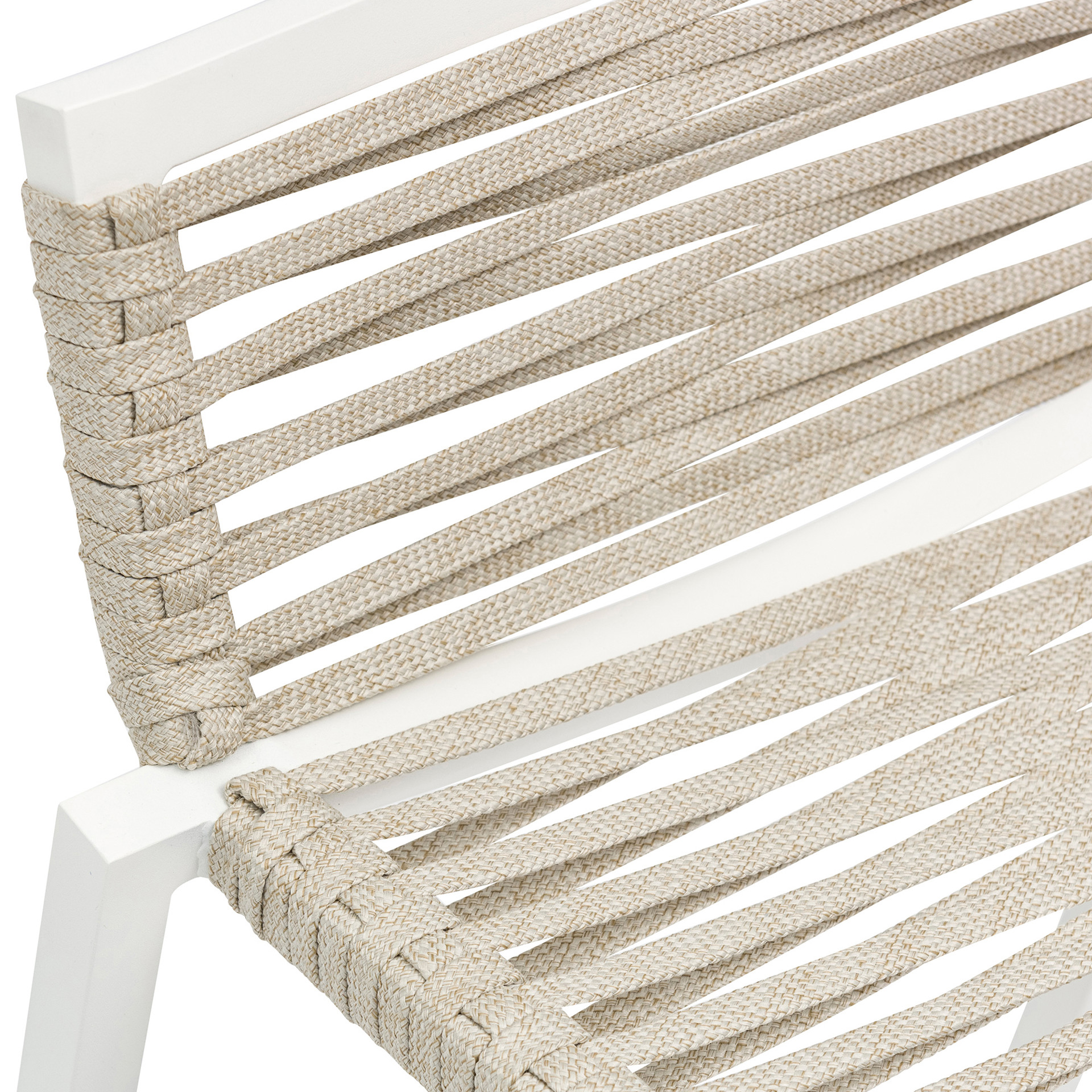 Un siège et un dossier en tissu corde beige vous soutiennent confortablement pendant que vous vous reposez et vous détendez au soleil, tandis que le design confère un attrait de villégiature définitif.