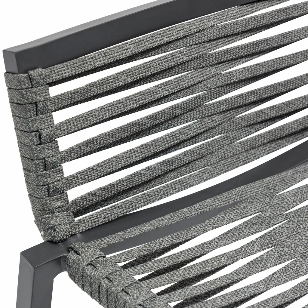 Un siège et un dossier en tissu corde gris vous soutiennent confortablement pendant que vous vous reposez et vous détendez au soleil, tandis que le design confère un attrait de villégiature définitif.