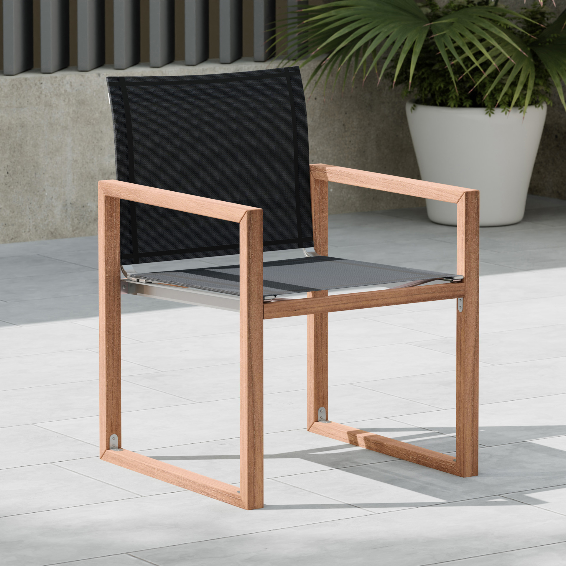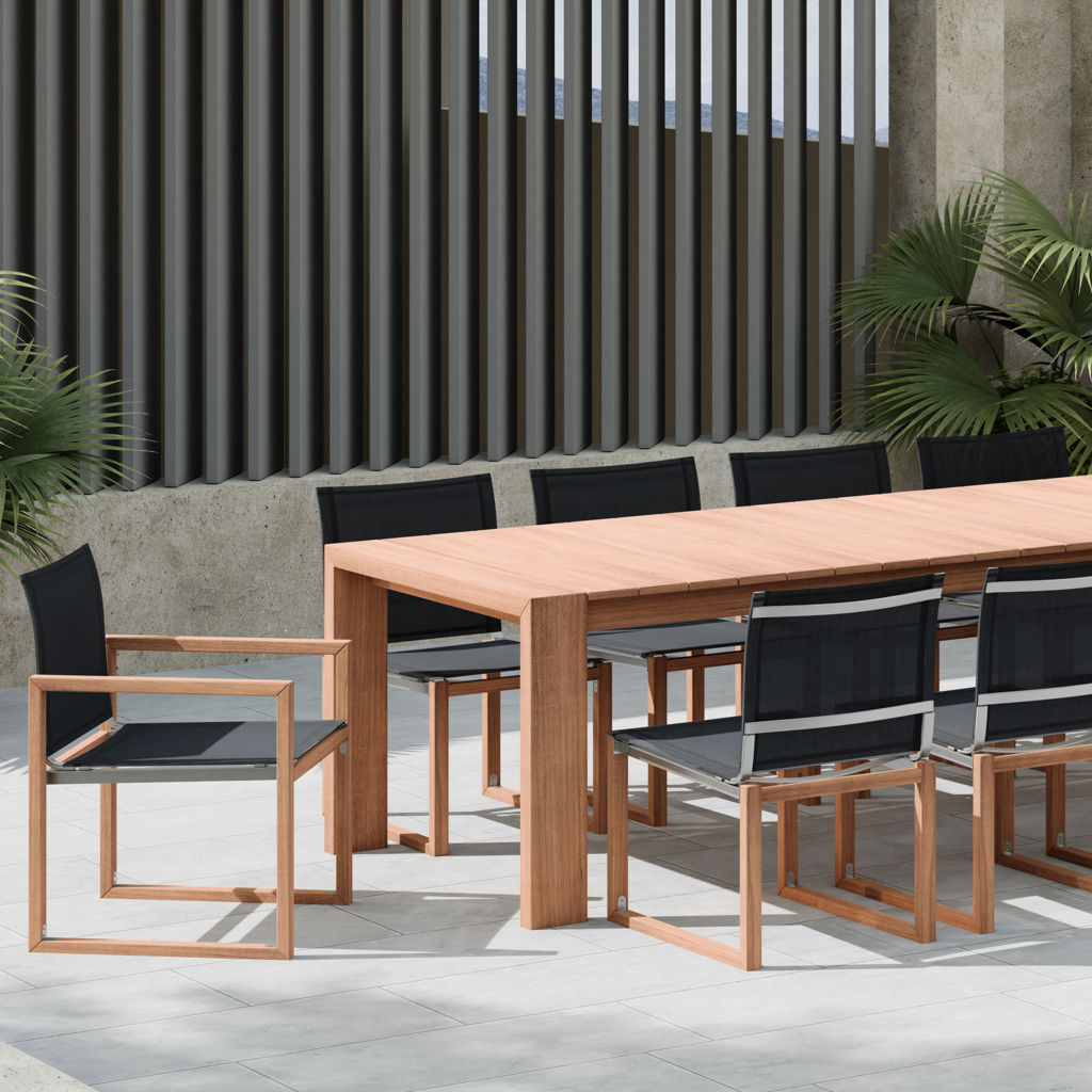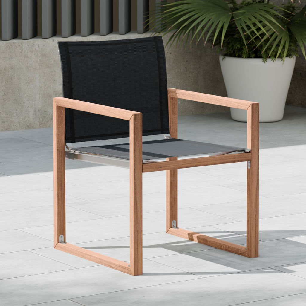 Faites de cette chaise de terrasse extérieure en teck Tulum l'endroit idéal pour se détendre et recevoir des invités dans votre espace extérieur.