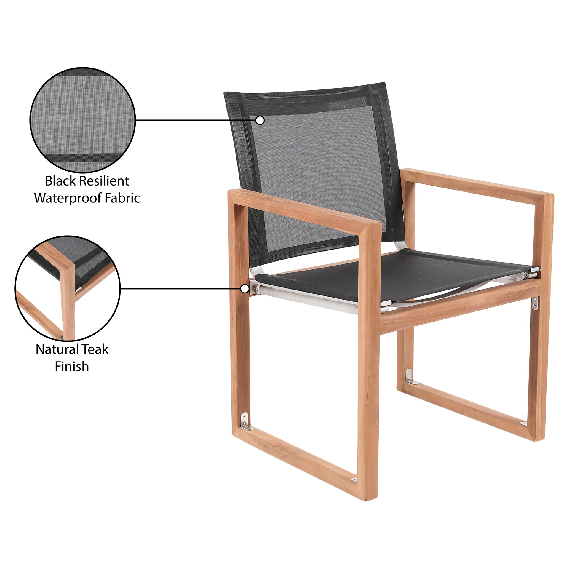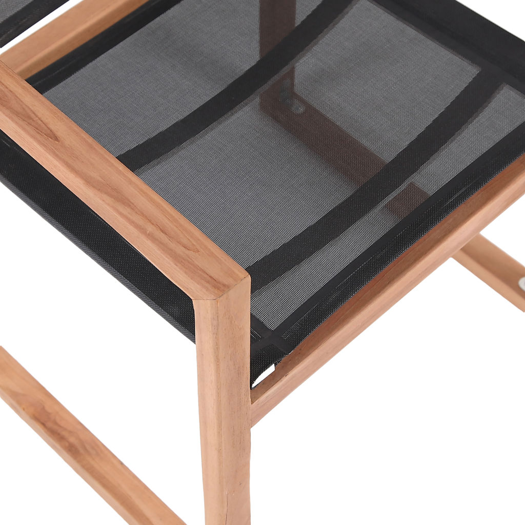 Cette chaise est dotée d'un tissu en maille noire résistant à l'eau, ce qui en fait l'endroit idéal pour reposer vos pieds et savourer un délicieux repas tout en admirant le lever du soleil.