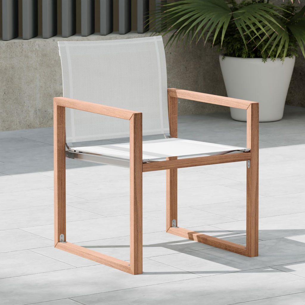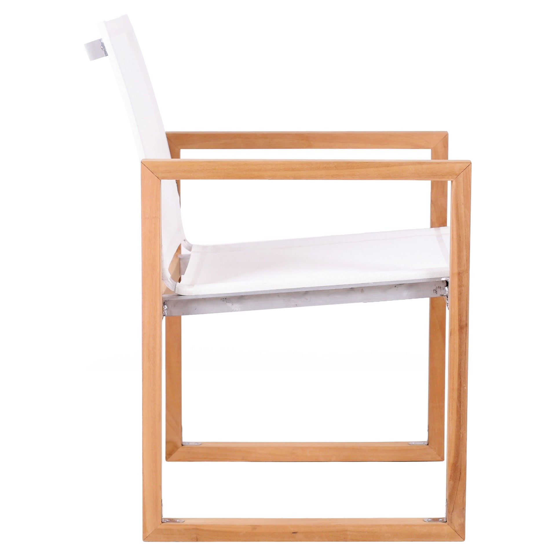 Faites de cette chaise de terrasse extérieure en teck Tulum l'endroit idéal pour se détendre et recevoir des invités dans votre espace extérieur.