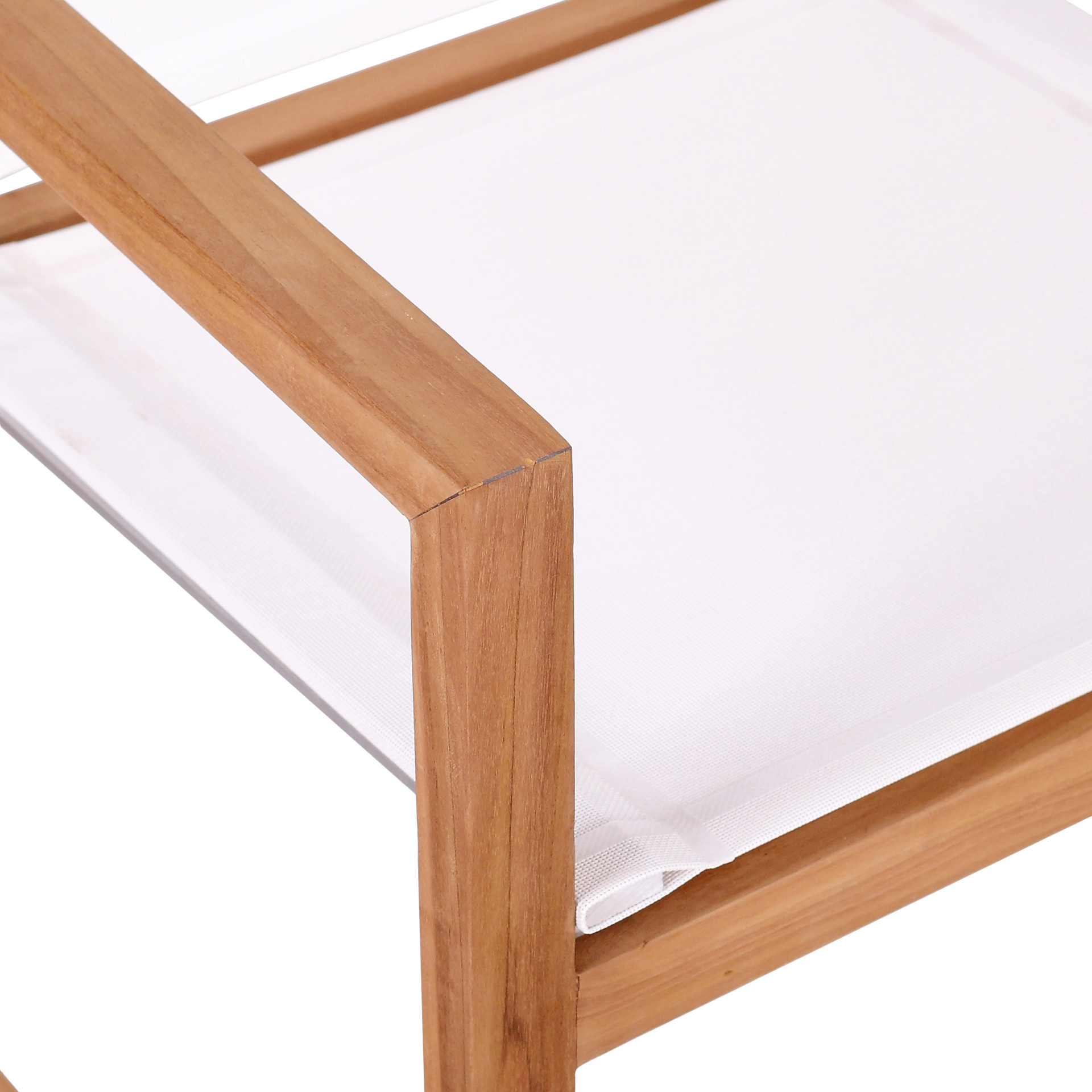 Cette chaise est dotée d'un tissu en maille blanc résistant à l'eau, ce qui en fait l'endroit idéal pour reposer vos pieds et savourer un délicieux repas tout en admirant le lever du soleil.