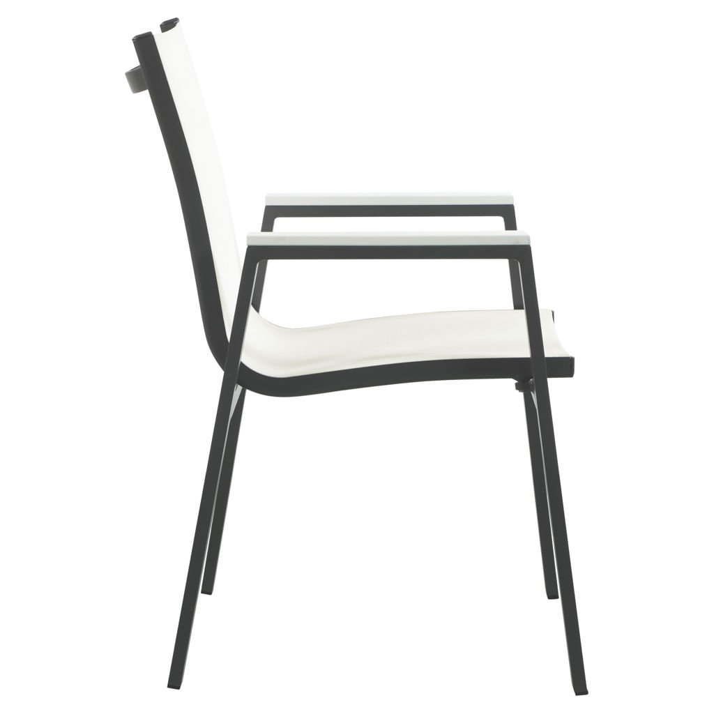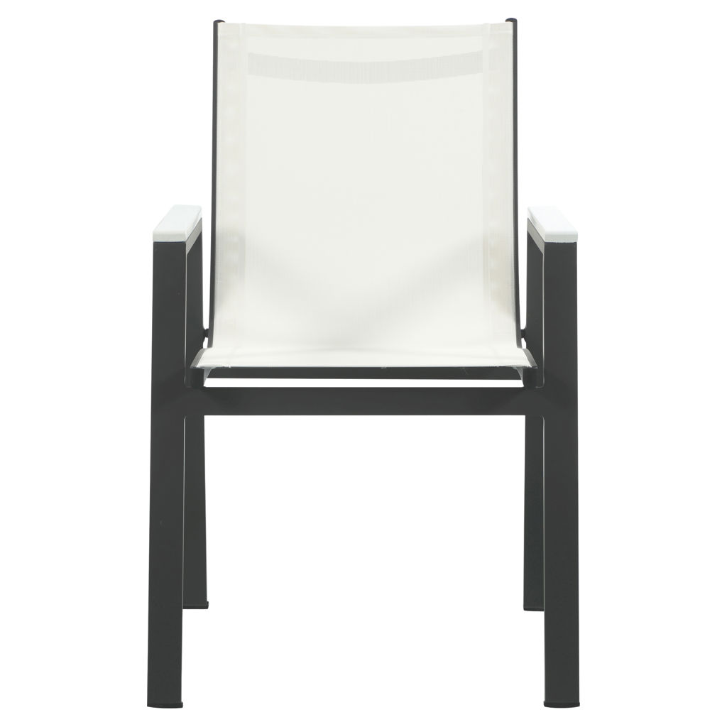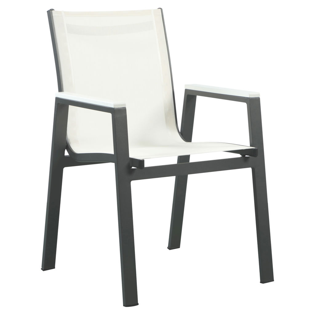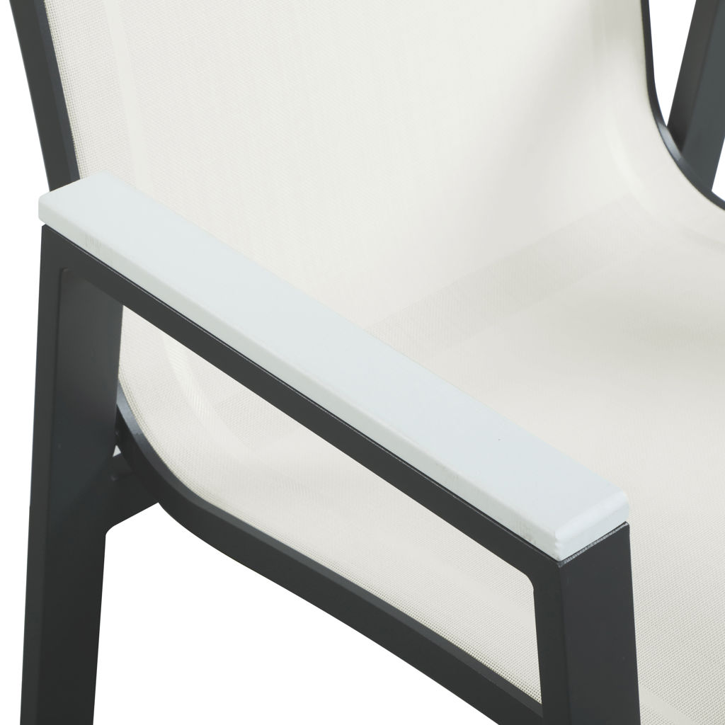 Cette belle chaise est dotée d'un tissu en maille blanc résistant à l'eau, ce qui la rend idéale pour une utilisation en extérieur, même par mauvais temps.