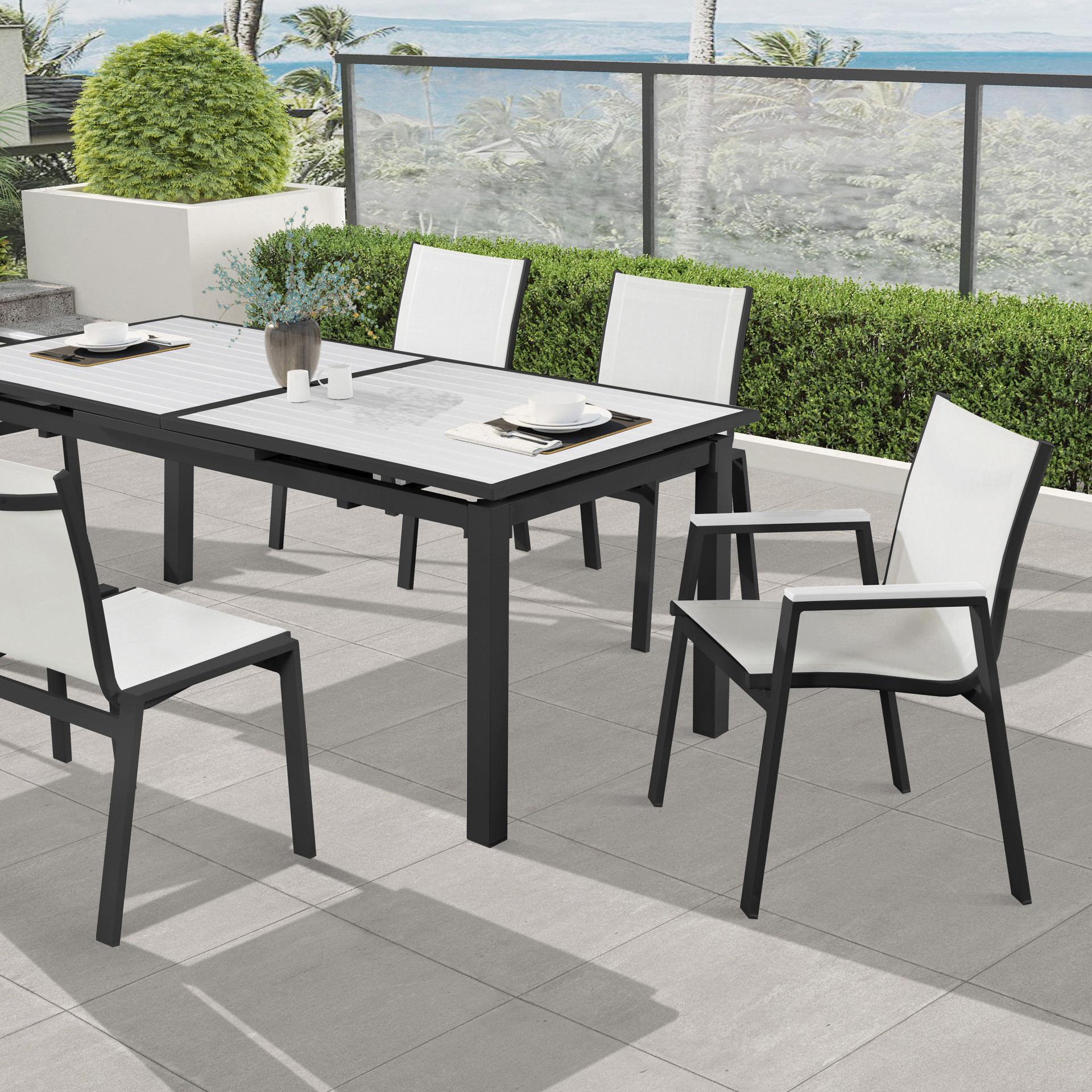 Associez cette chaise Nizuc à la table de la même collection pour un groupe de divertissement extérieur cohérent.