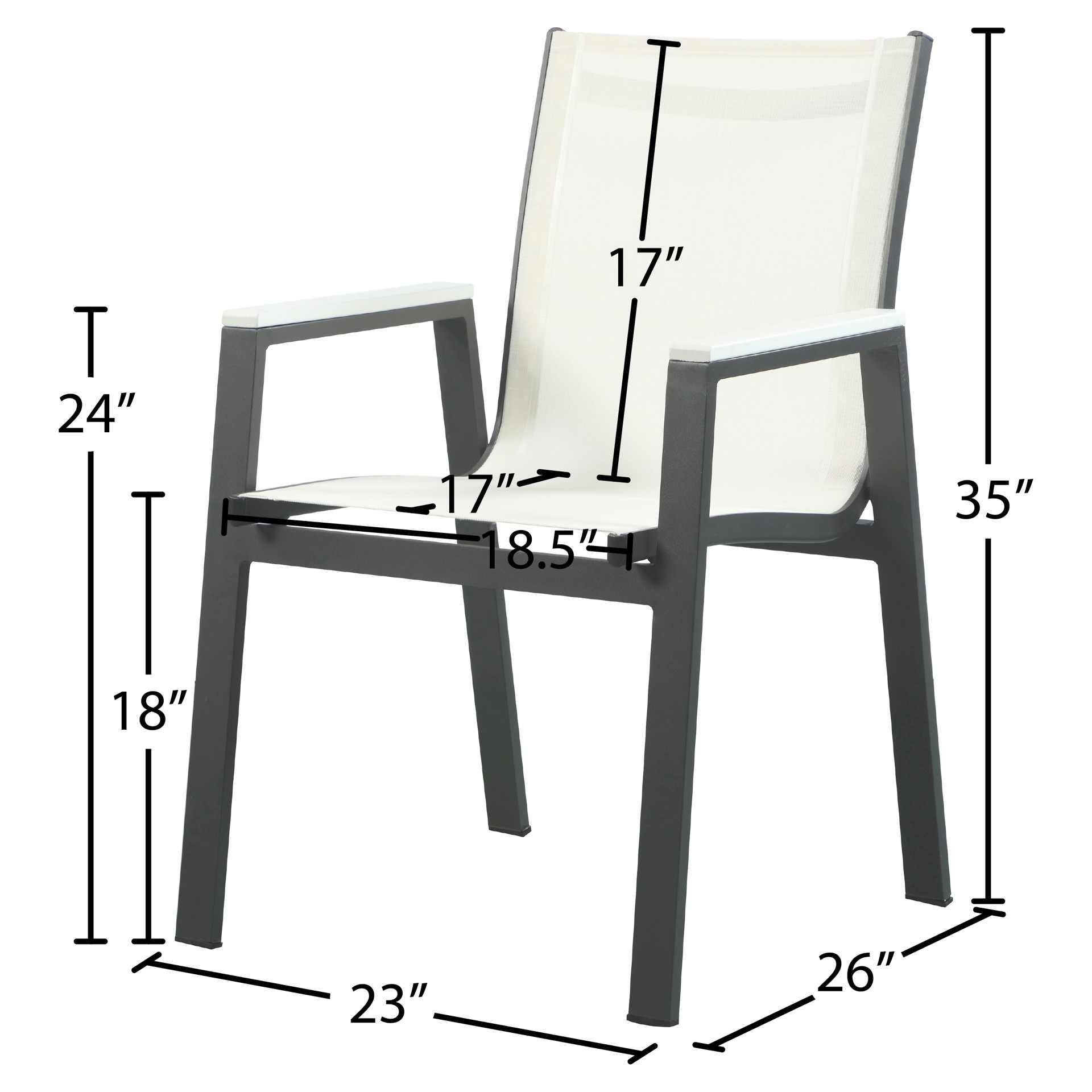 • Hauteur du dossier : 17 po