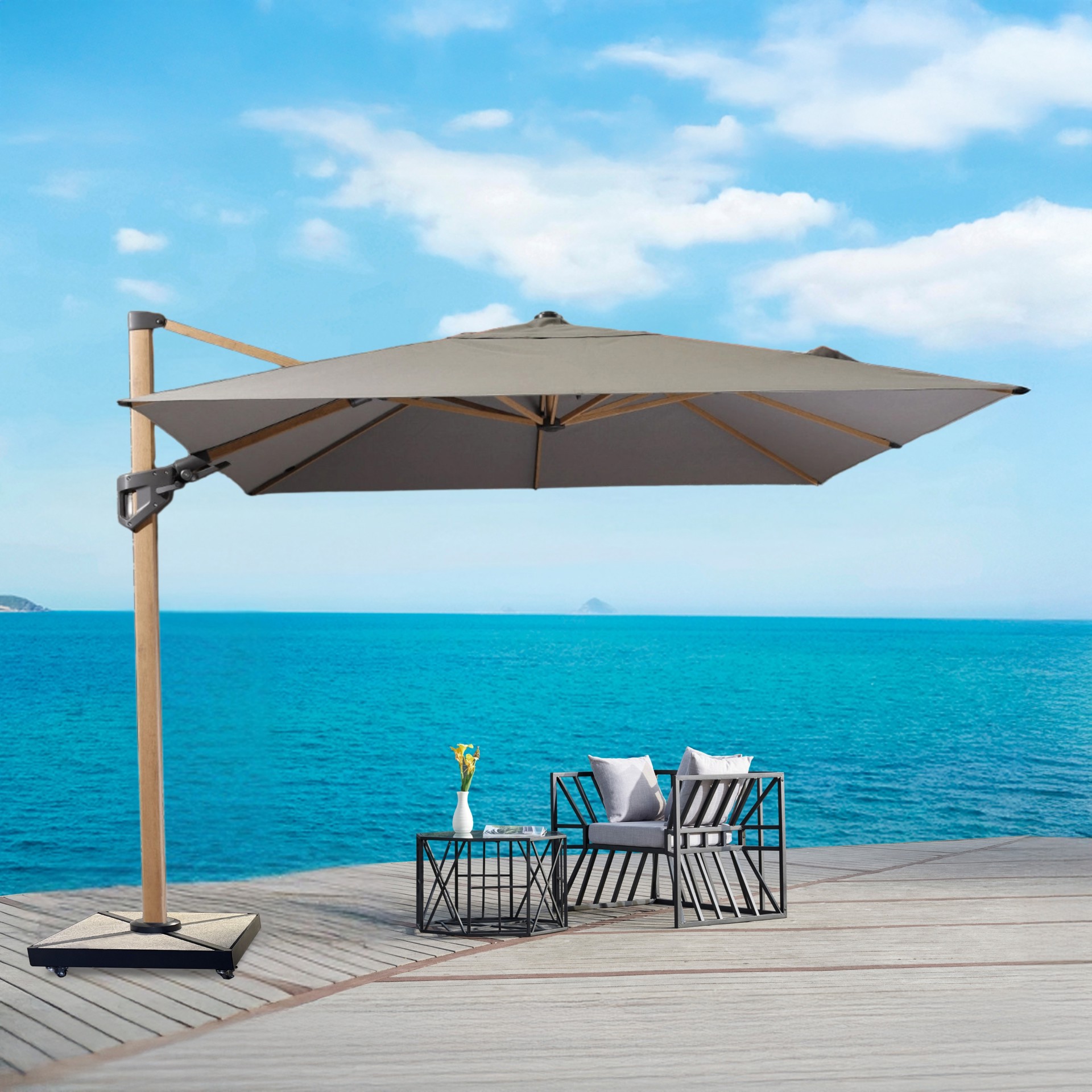 Parasol carré 10' x 10' autoportant avec base en granit sur roulettes