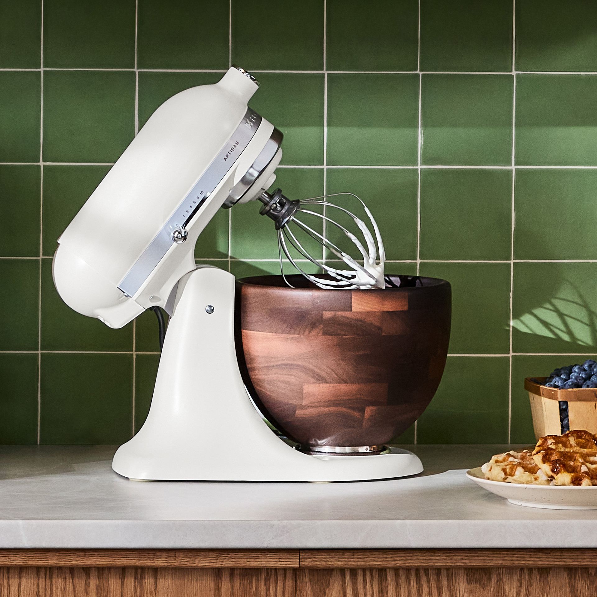 atteur sur socle à tête inclinable pour un accès clair au bol et au batteur ou accessoire attaché, pour ajouter facilement des ingrédients pour une recette .