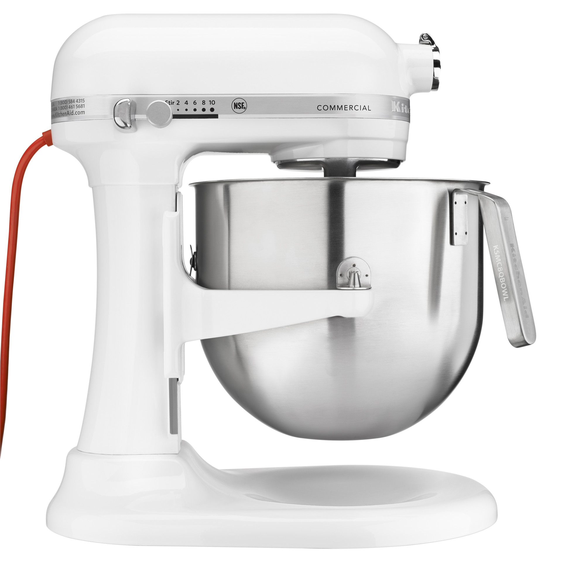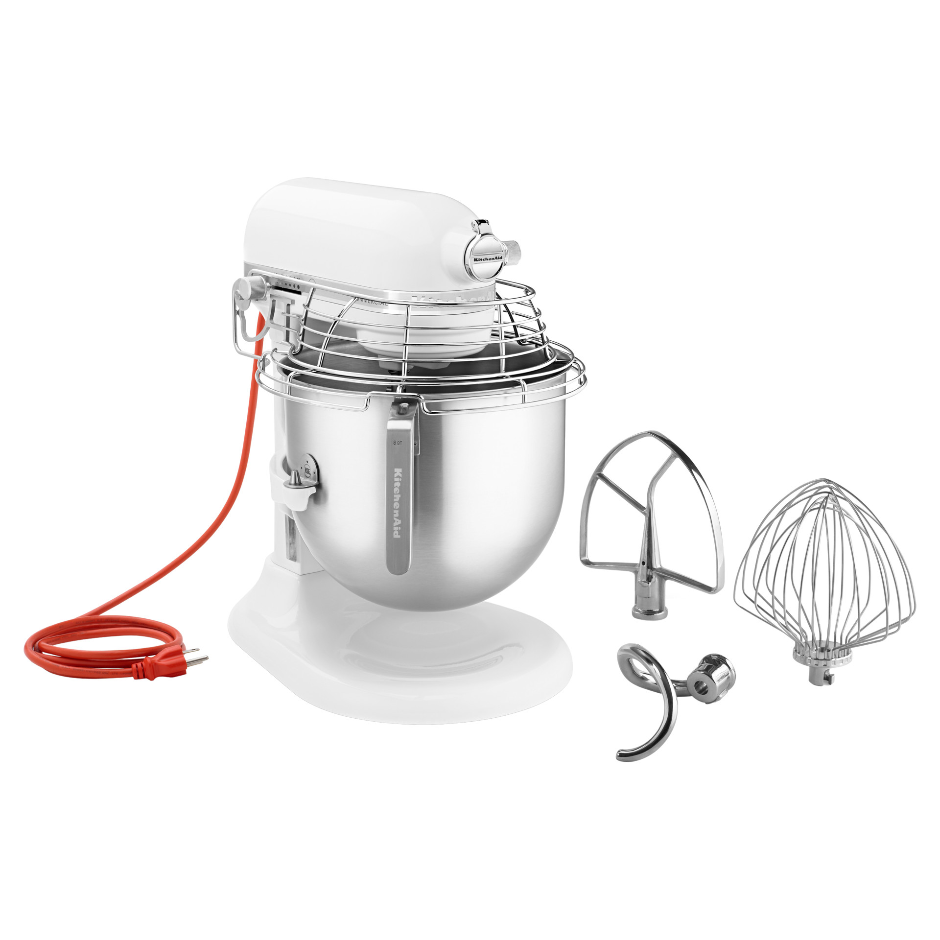 Batteur sur socle Série commerciale à bol relevable 8 pintes avec protection de bol KitchenAid KSMC895WH