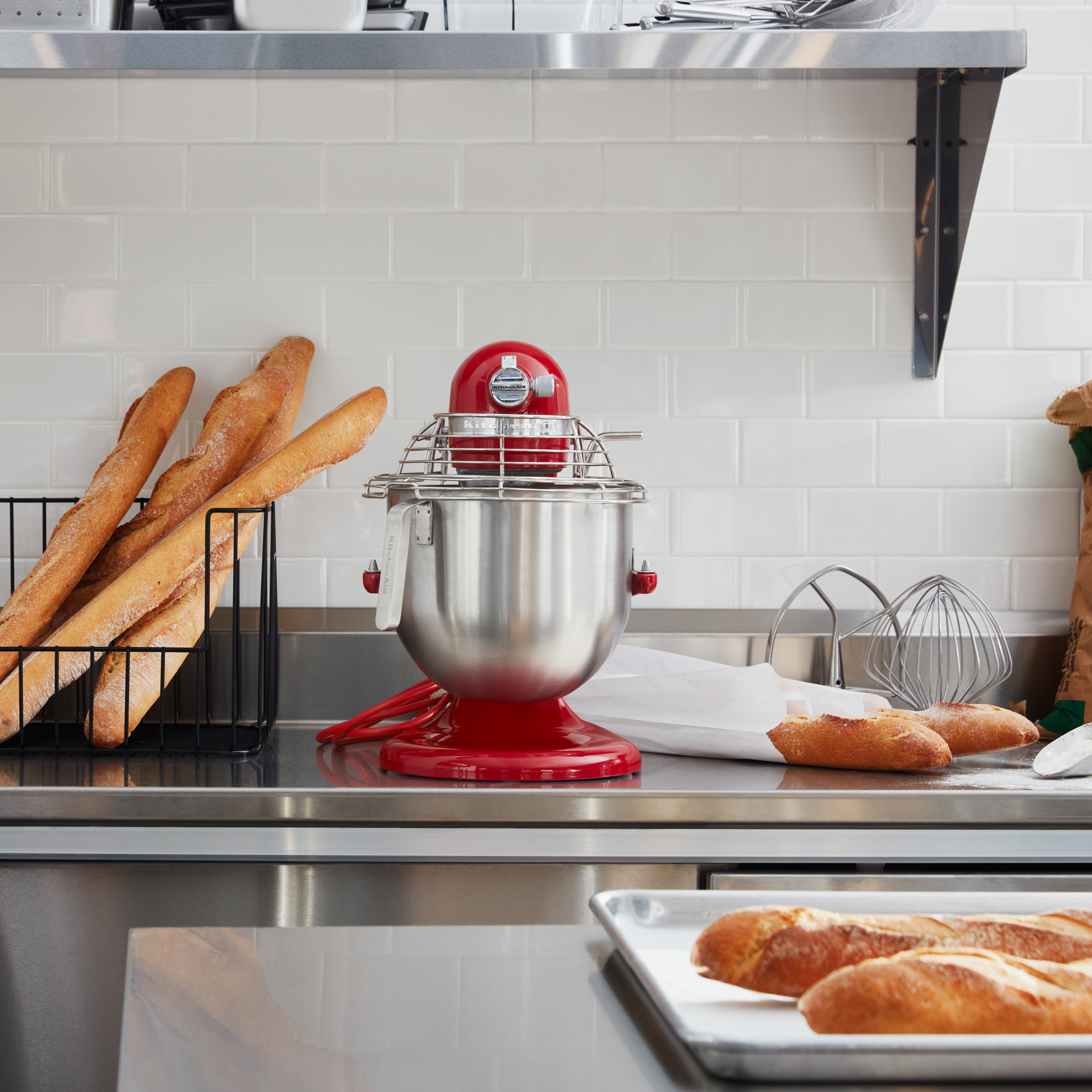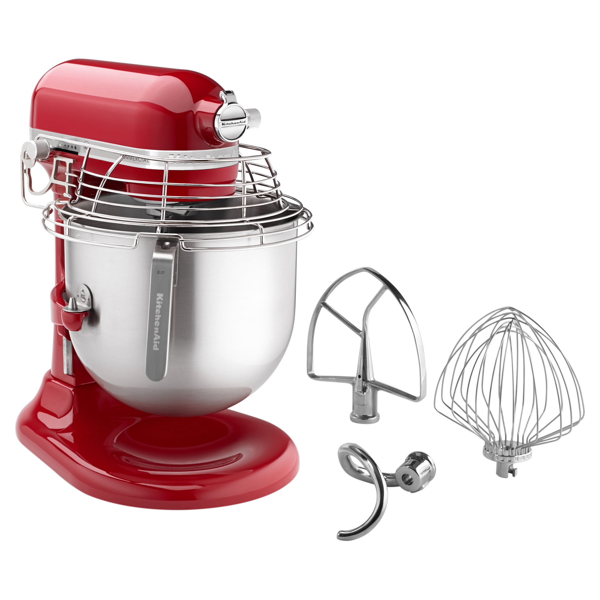 Le robot pâtissier KitchenAid® NSF Certified® Commercial Series de 8 pintes (7,6 L) avec bol relevable est doté d'une protection de bol en acier inoxydable et d'un puissant moteur de 1,3 CV