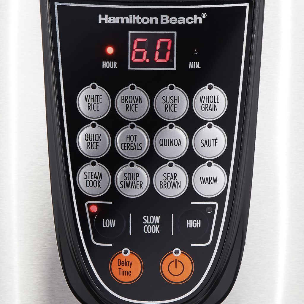 Économisez de l’espace de rangement et profitez de la polyvalence de cuisson grâce à l'autocuiseur numériqueHamilton Beach.