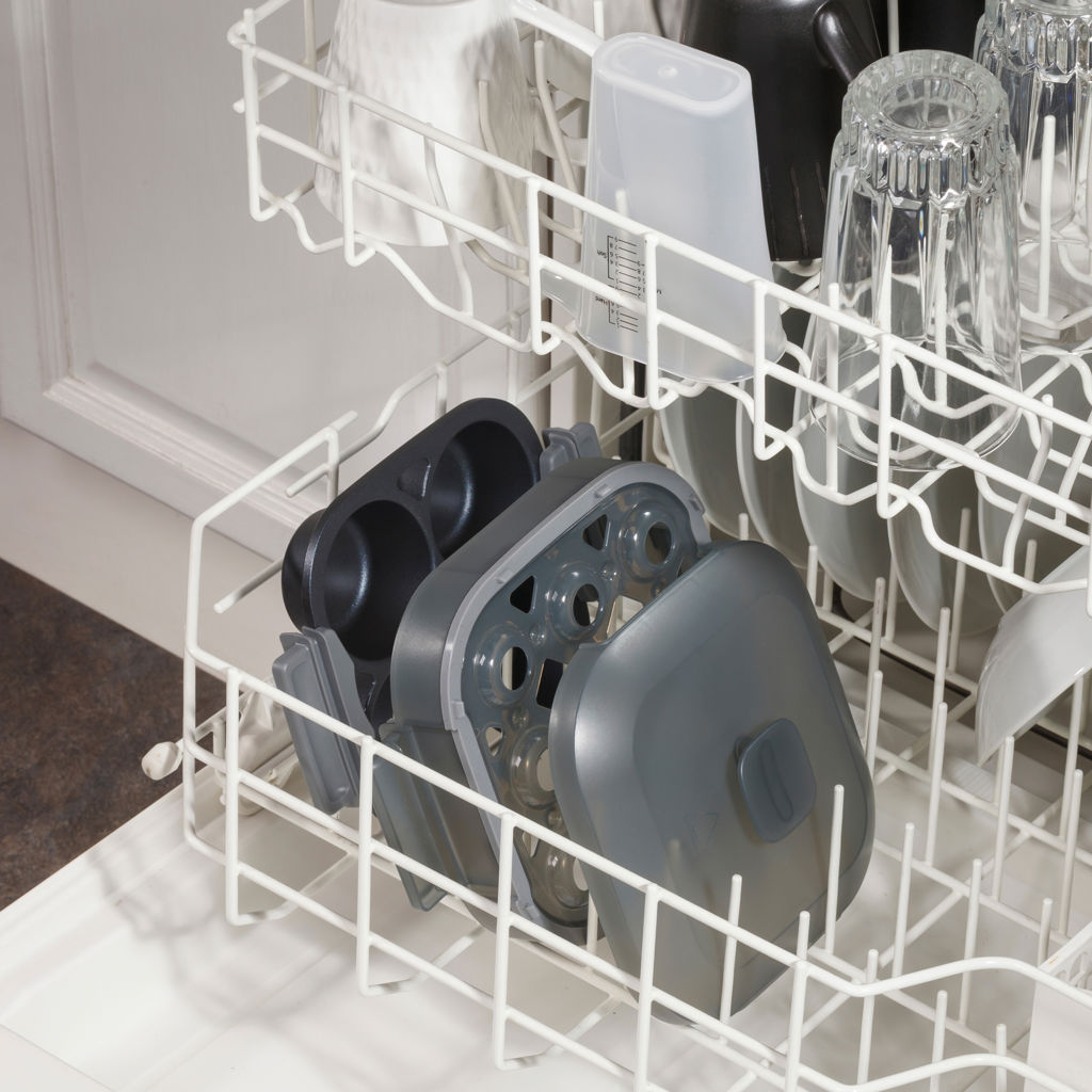 Le plateau pour œufs pochés/bouchées, le plateau pour œufs durs, le verre doseur et le couvercle passent tous au lave-vaisselle pour un nettoyage facile.